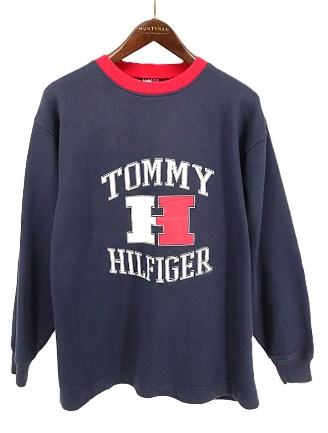 ¸ÅÃå 90's USAÀ½ TOMMY HILFIGER ¥È¥ß¡¼¥Ò¥ë¥Õ¥£¥¬¡¼ Á°ÌÌ¥í¥´¥×¥ê¥ó¥È ¥Õ¥é¥Ã¥°»É½« ¥¹¥¦¥§¥Ã¥È¥·¥ã¥Ä / ¥á¥ó¥ºXL