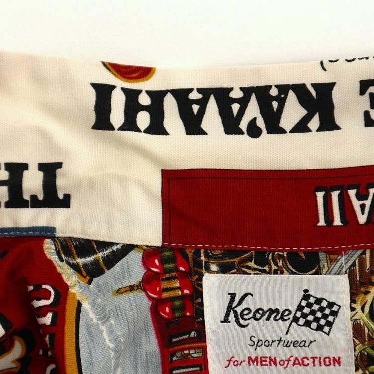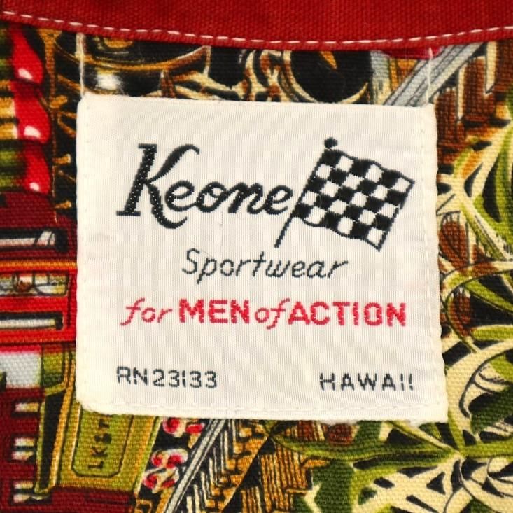 古着 70's ハワイ製 ビンテージ KEONE SPORTWEAR 鉄道 汽車 総柄プリント LAHAINA-KAANAPALI アロハ 半袖シャツ / メンズL相当