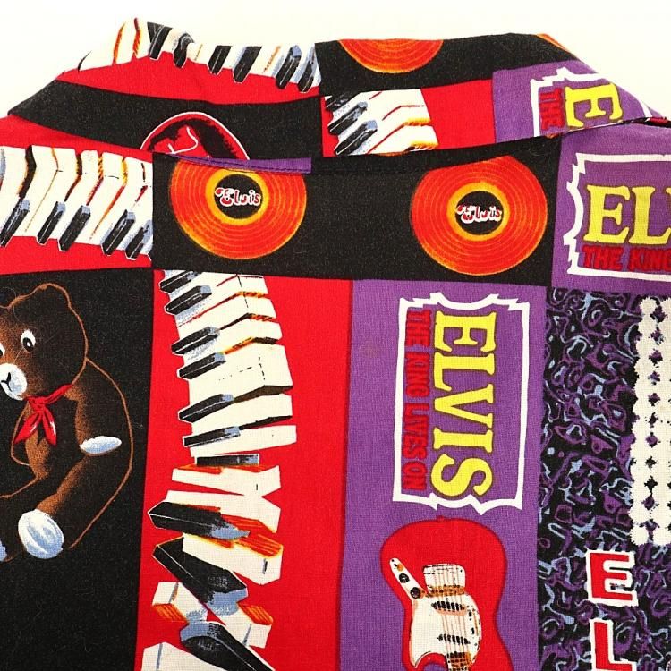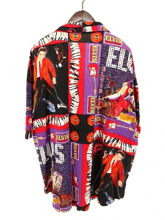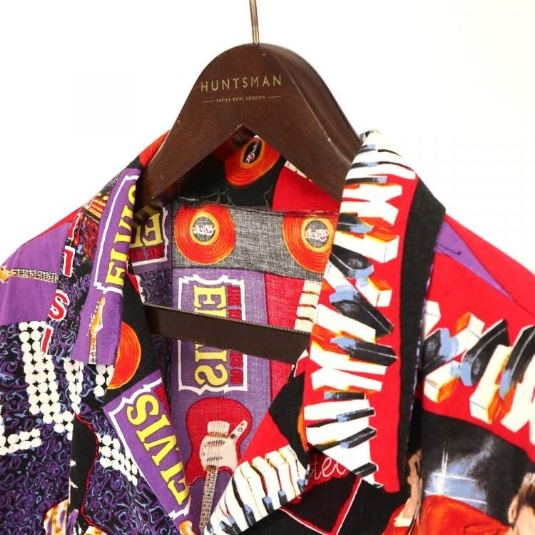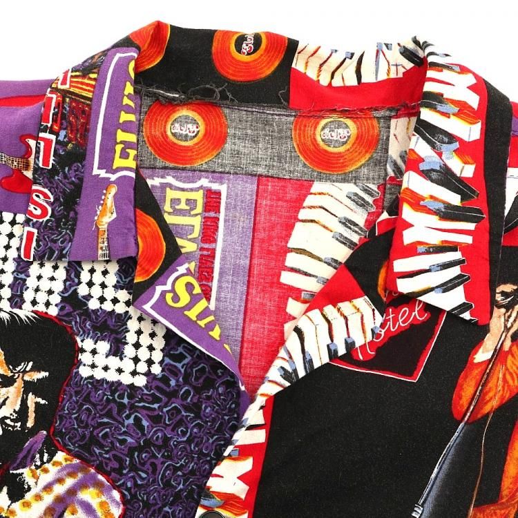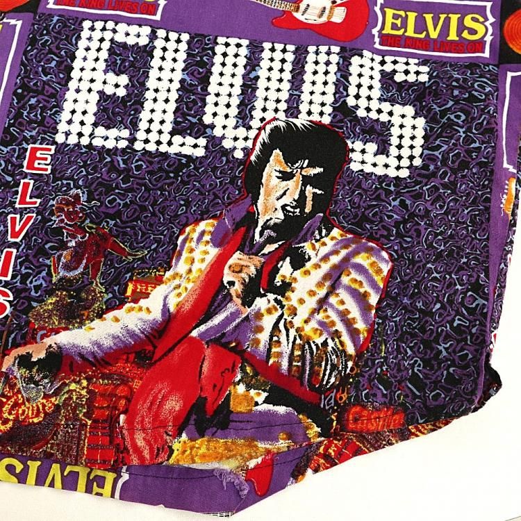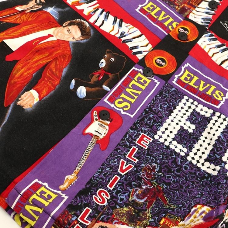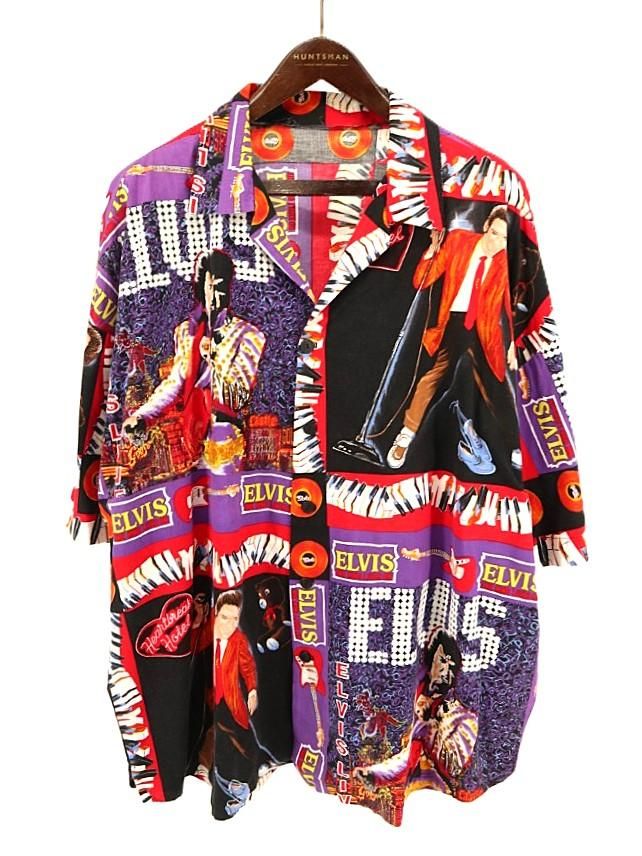 コメント:90年代頃のエルヴィスの総柄半袖シャツです。 ハンド クラフトのため縫製は雑な所はありますが、ワン&オンリー 迫力抜群の全面プリント。  間違いなく主役級の一枚です。