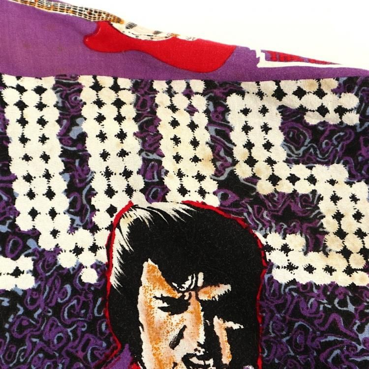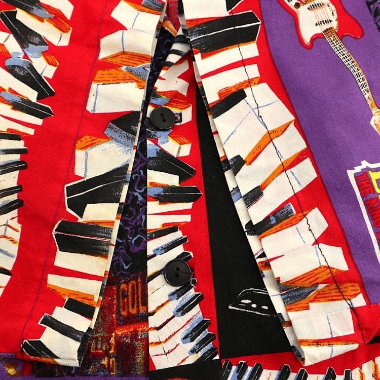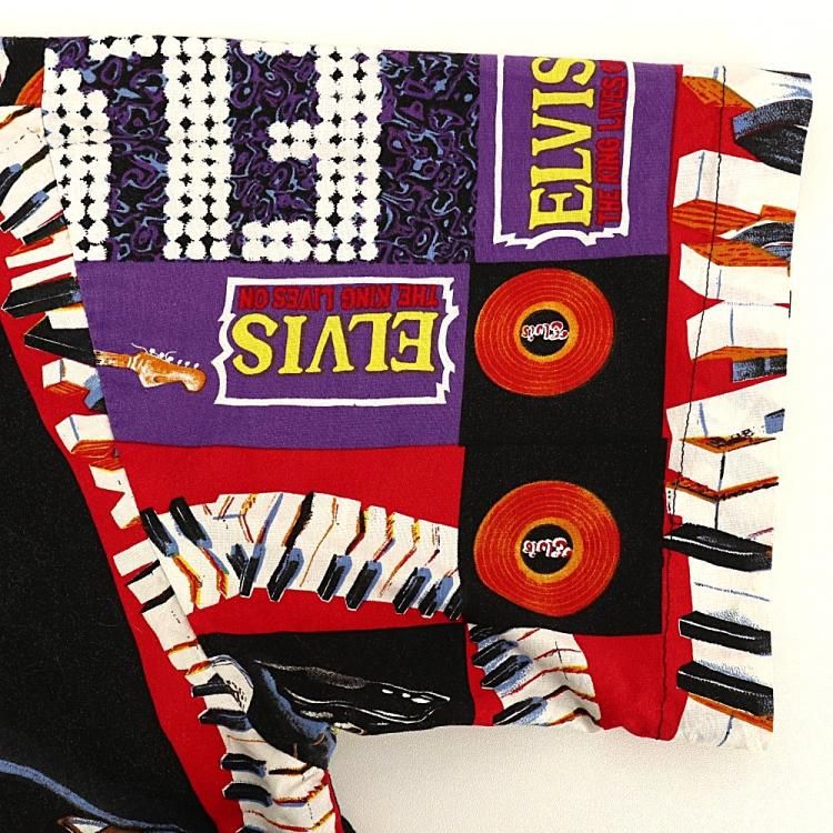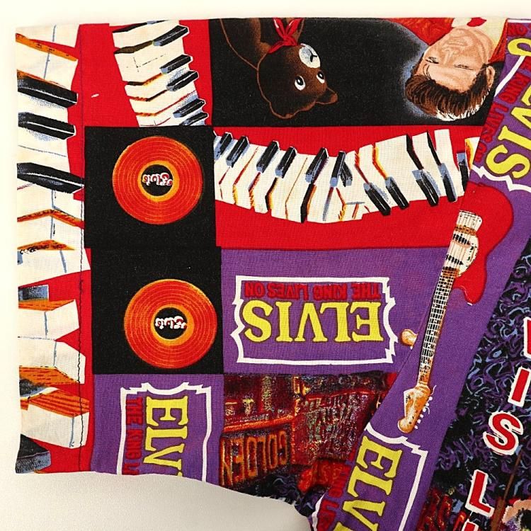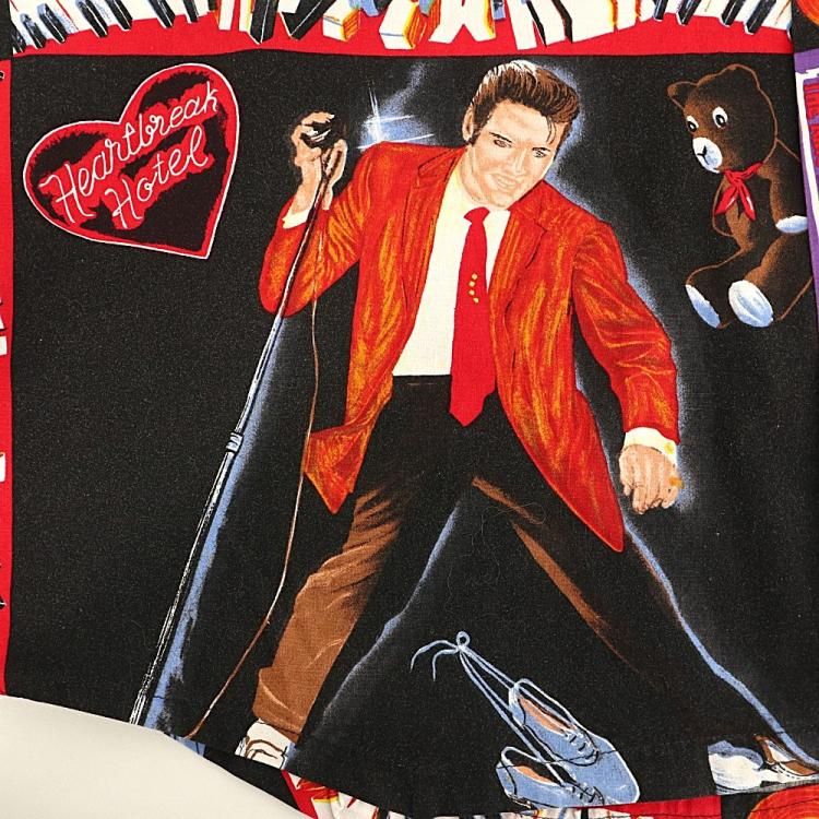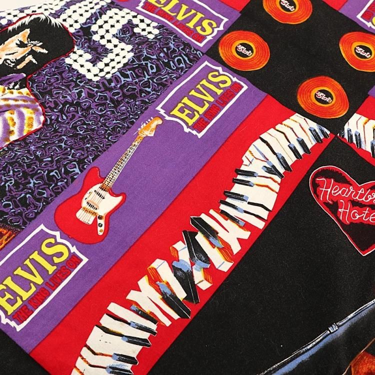 コメント:90年代頃のエルヴィスの総柄半袖シャツです。 ハンド クラフトのため縫製は雑な所はありますが、ワン&オンリー 迫力抜群の全面プリント。  間違いなく主役級の一枚です。