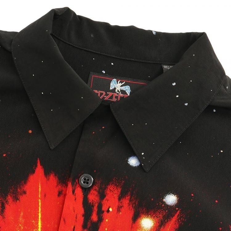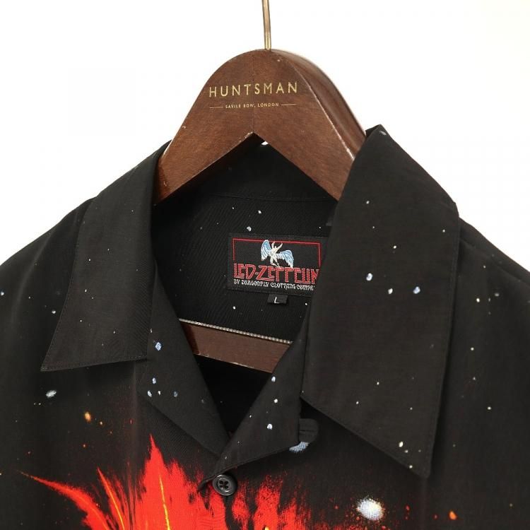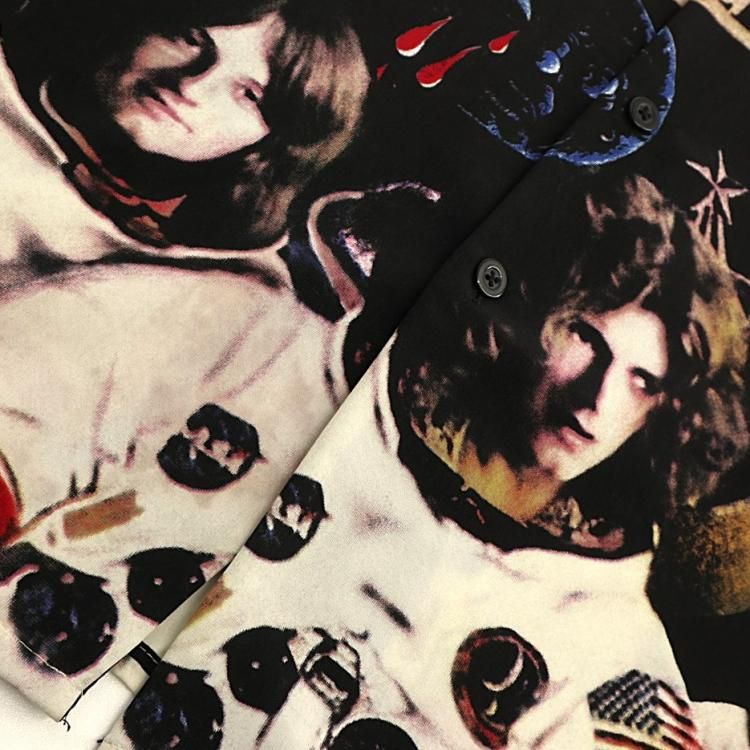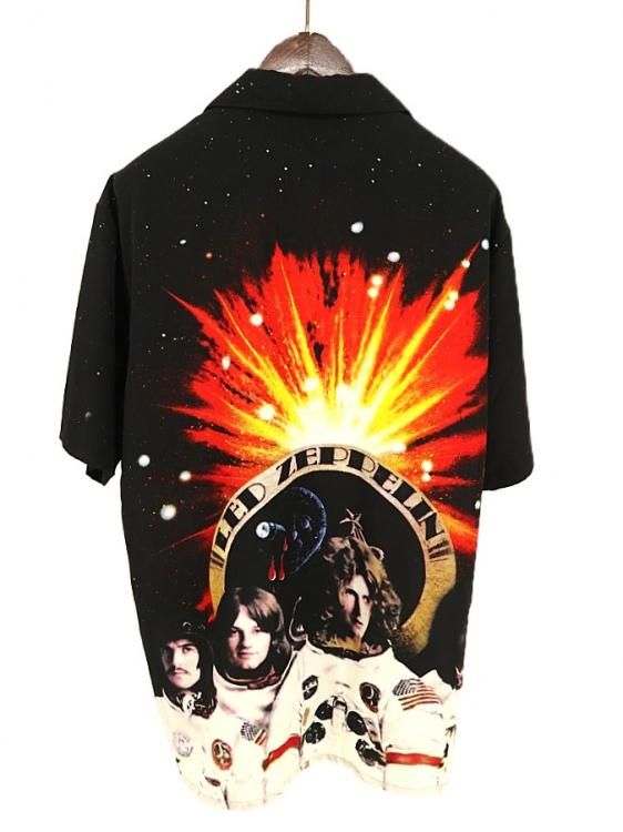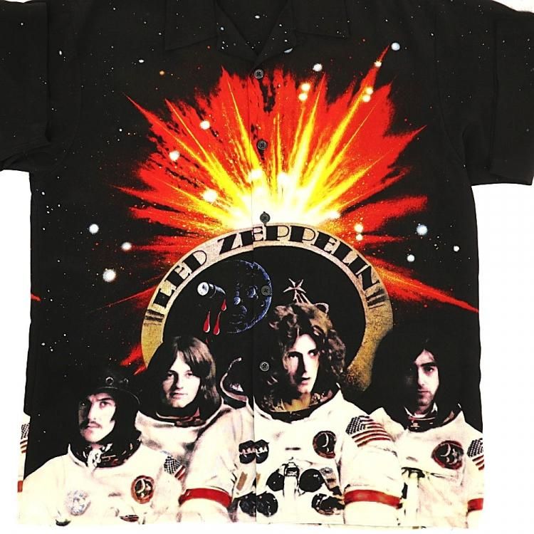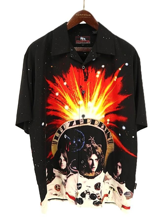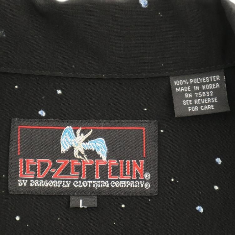 古着 90's サンプル品 LED ZEPPELIN レッドツェッペリン バンド ロック オープンカラー 開襟 ポリエステル 半袖シャツ / メンズL