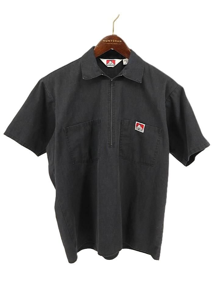 古着 90's USA製 BEN DAVIS ベンデイビス プルオーバー ハーフジップ ワークシャツ 半袖シャツ / メンズM