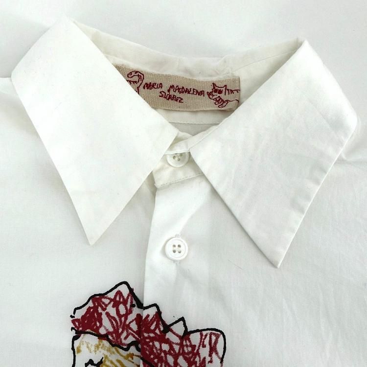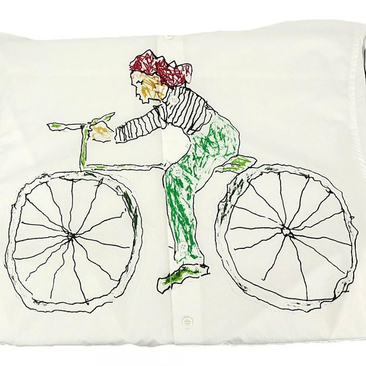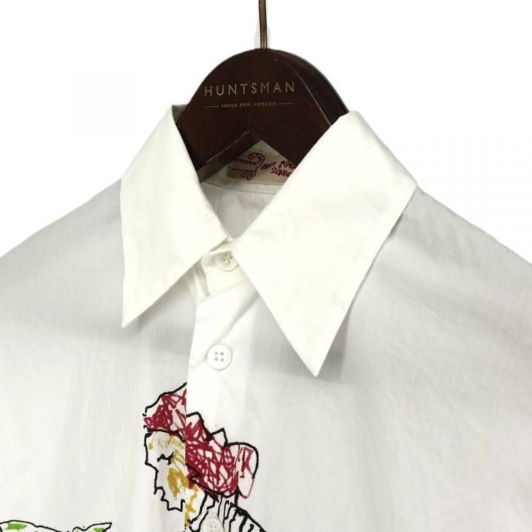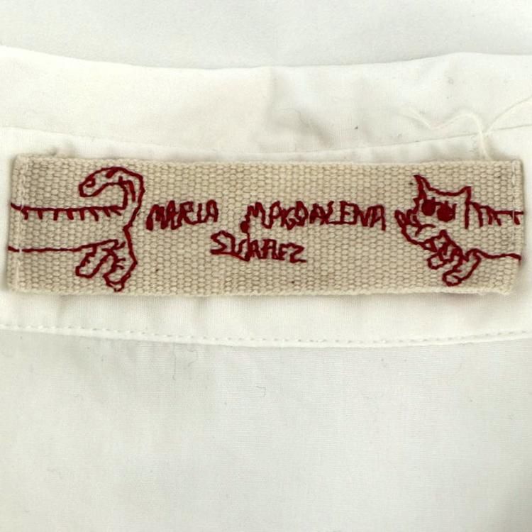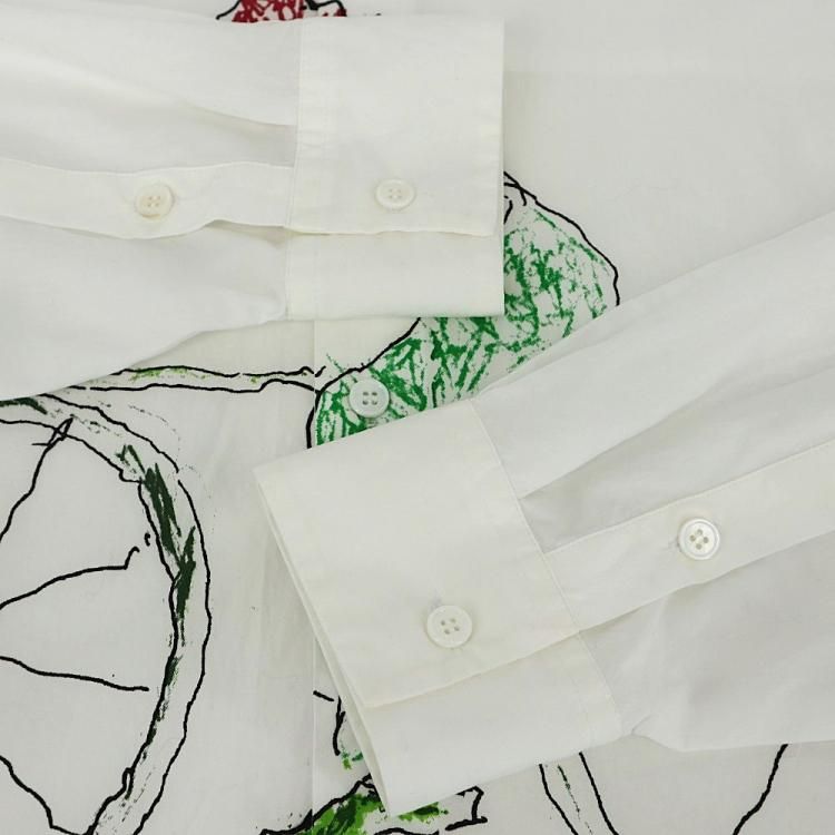 コメント:MARNI 2018年SSモデルの白シャツです。 ベネズエラのアーティスト マリア・マグダレナ・スアレスとの貴重なコラボモデルで、サイクリングをしている人が描かれたユニークで可愛らしい一枚です。 レディースモノですが、大きめの作りなのでメンズの方でも着用頂けます。 お探しの方はお早めに!