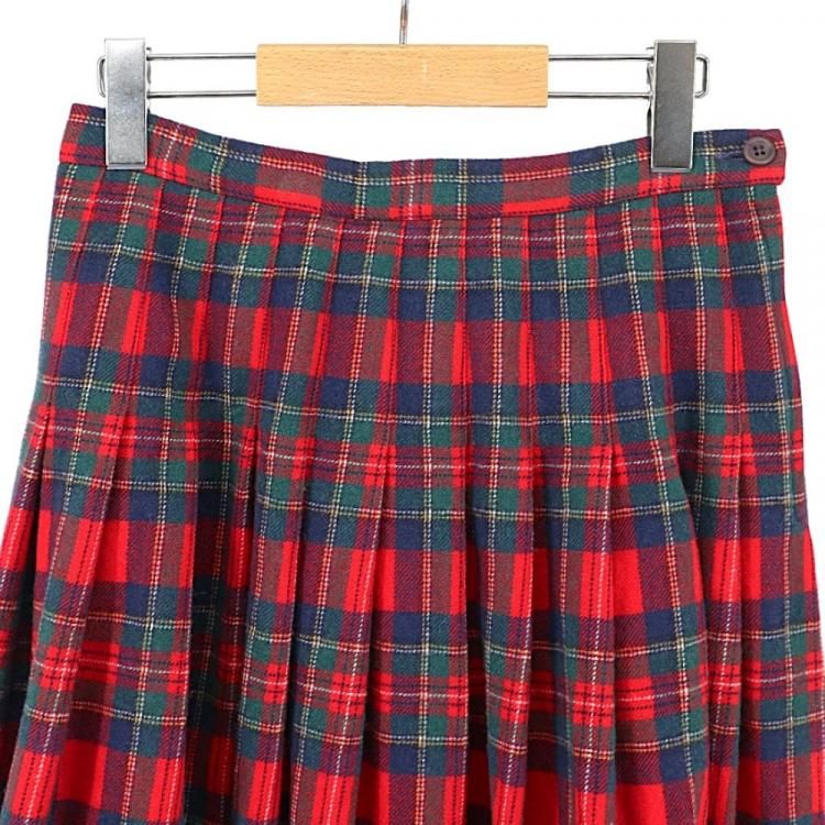 古着 70's USA製 ビンテージ PENDLETON ペンドルトン バージンウール タータンチェック プリーツ スカート / レディースL相当