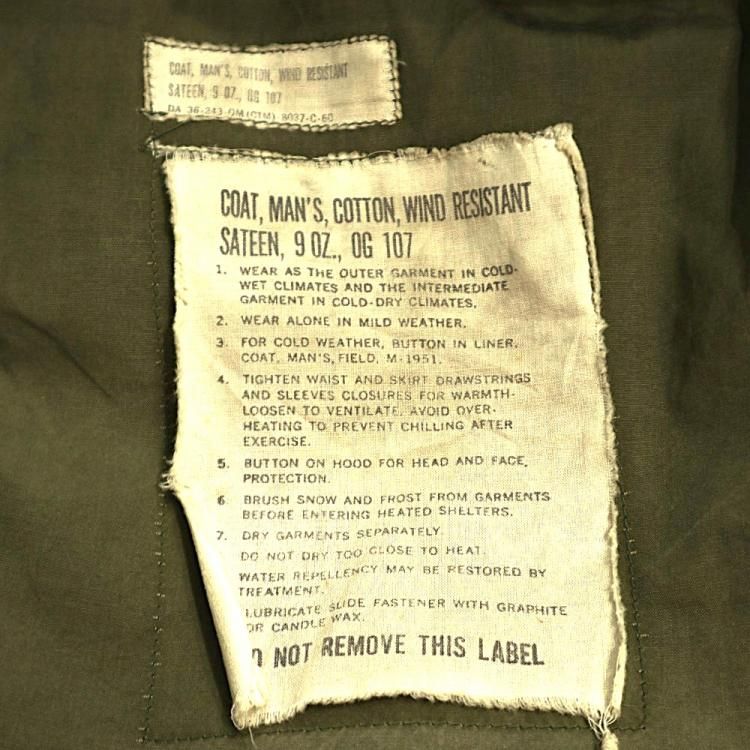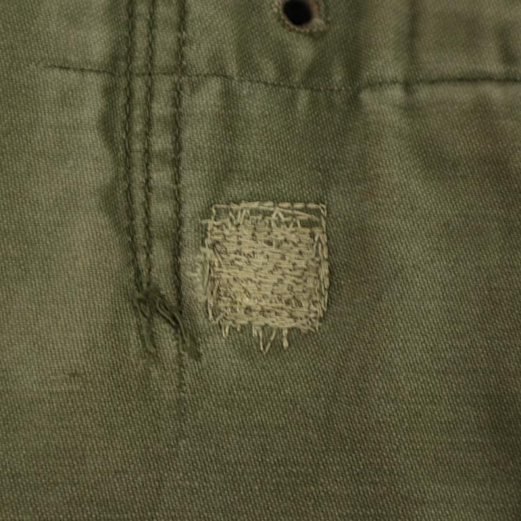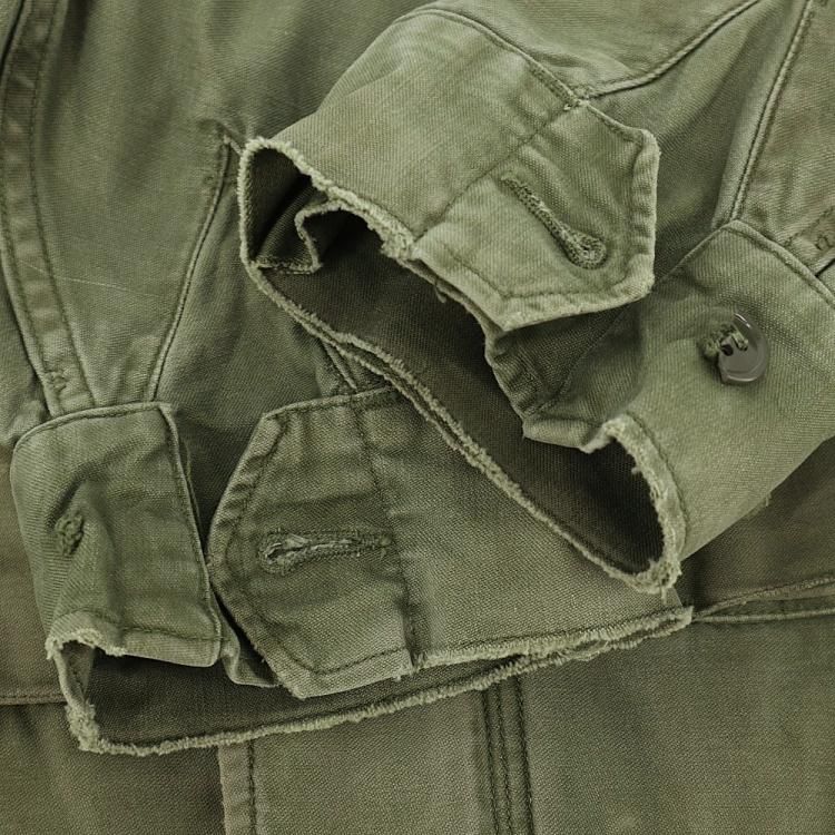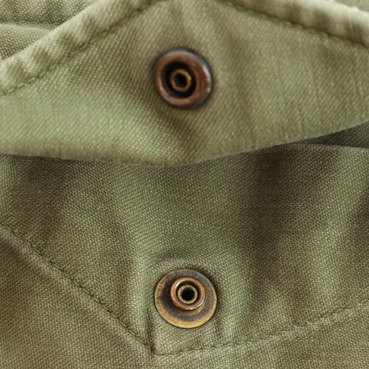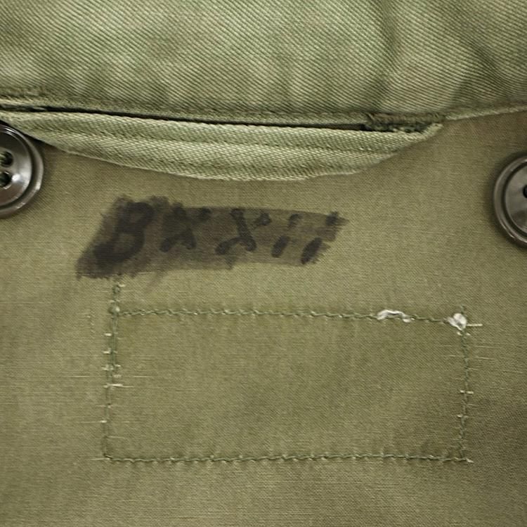コメント:60年コントラクト ヴィンテージ U.S.ARMYの COAT, MEN'S, COTTON WIND RESISTANT, SATEEN, 9oz., OG 107。 いわゆるM51フィールドジャケットです。 一見M65と似ていますが、シャツ襟になっているのが特徴です。 M51を着用している人を見掛けると拘りを感じられます。