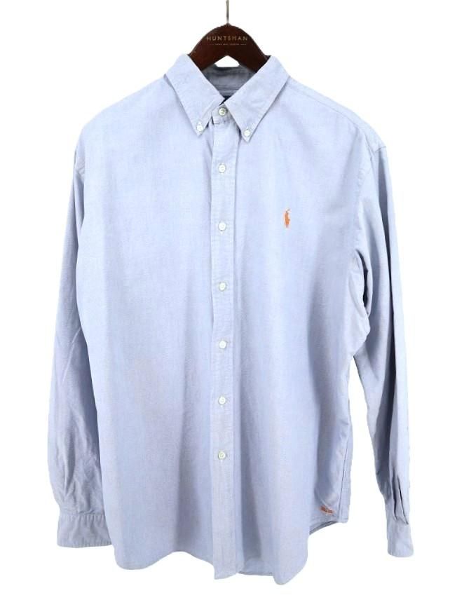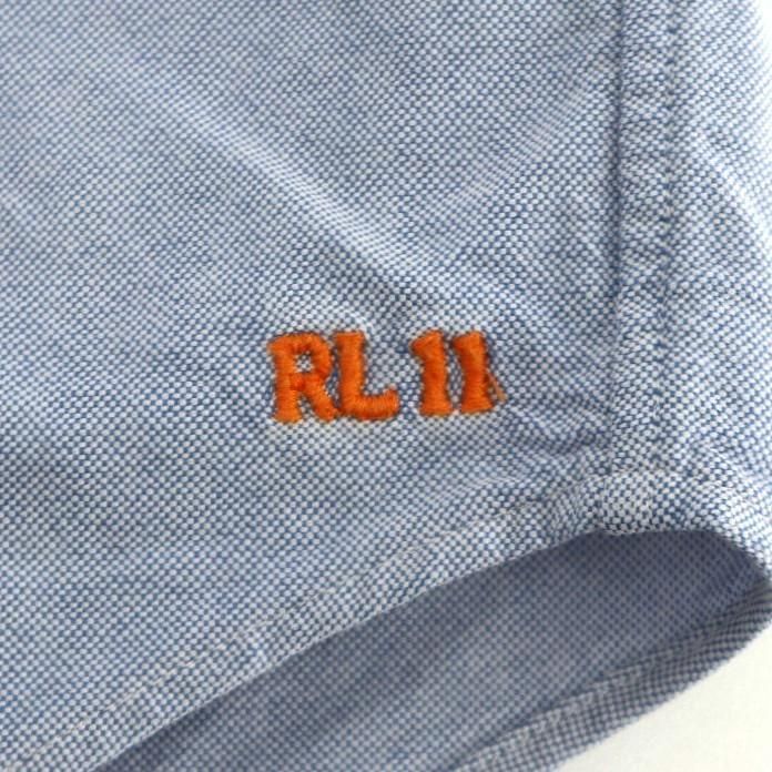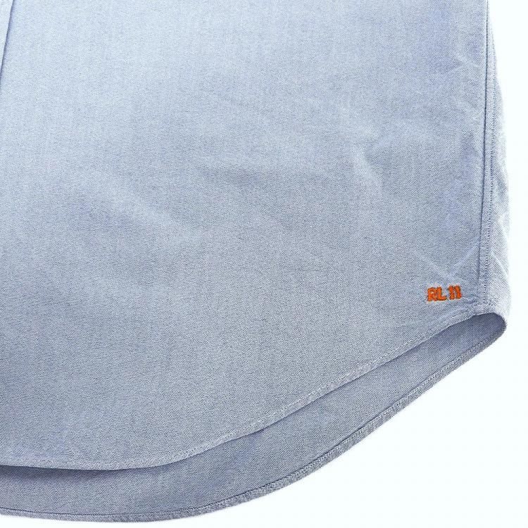 コメント:90~00年代ラルフローレンのBDシャツです。 程良いゆとりがあり着用しやすい定番のCLASSIC FIT 。 ラルフのド定番 ブルーのオックスフォード シャツは間違いなし。 左脇の裾に " RL11 " の刺繍がオレンジで入っています。