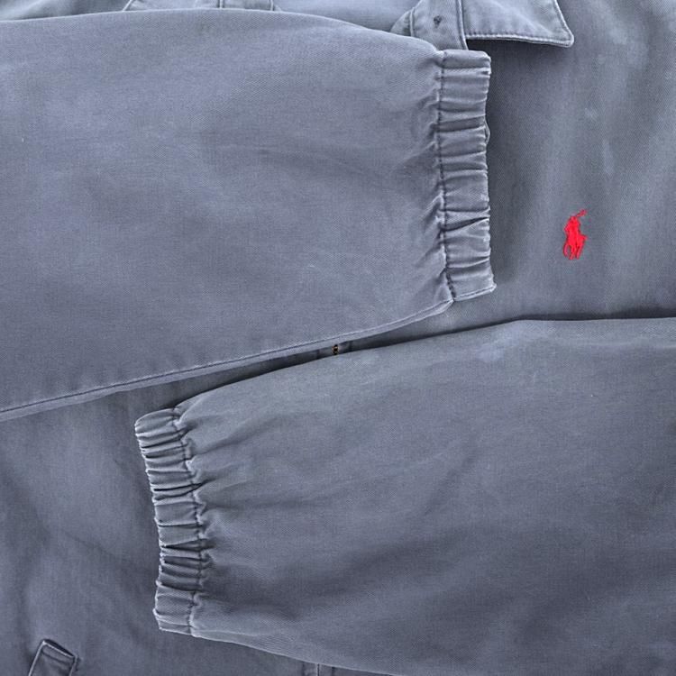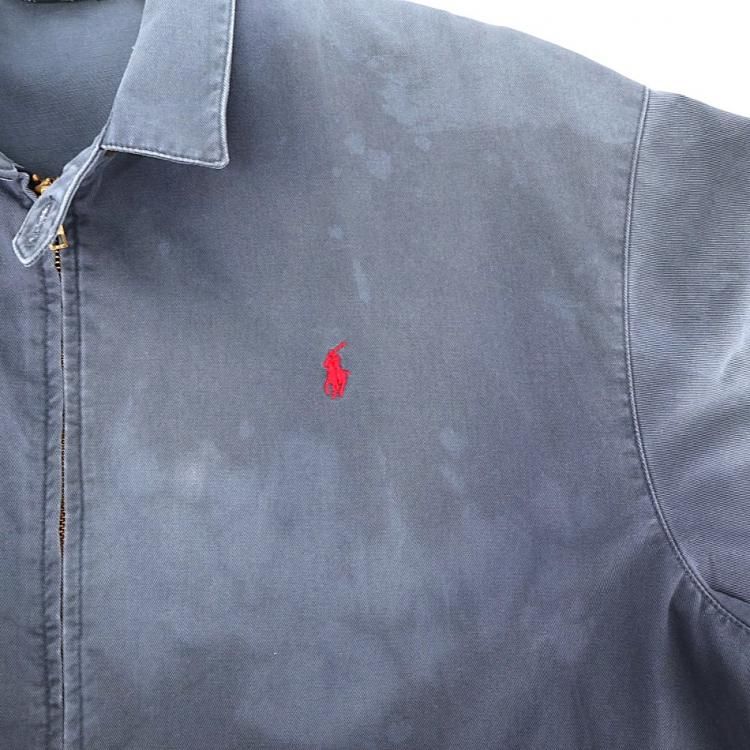 コメント:80~90年代ラルフローレン社製 希少なUSA製のスウィングトップです。 しっかりとしたコットン地、ワンポイント刺繍は赤色です。 様々なシーズンで着回しができる一品、短丈のシルエットが今っぽいです。