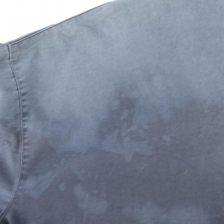 襟元のシミのほか、色褪せや色抜けが全体の広範囲にあります。