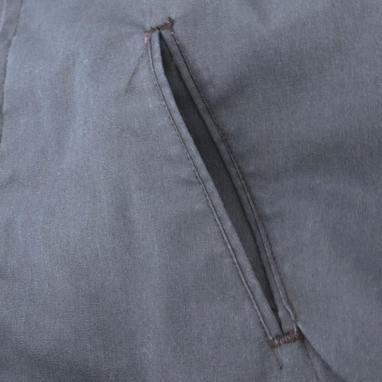 コメント:恐らく70~80年代のワークジャケットです。 こちらはセットインスリーブなのですが、後ろ身頃が肩を超えてまるでラグランの様な切り返しになった珍しいディテール。 サテンの裏地付きなので滑らかな袖の通し。 こちらは小さめサイズになるので女性の方にもおすすめです。