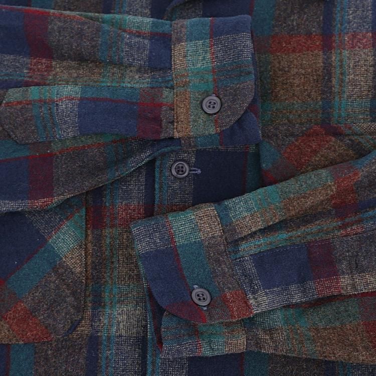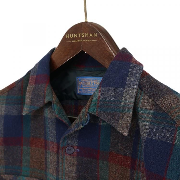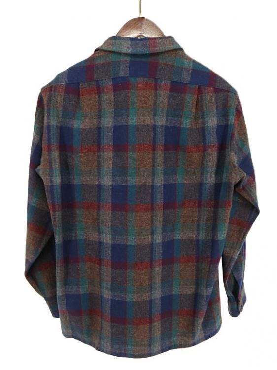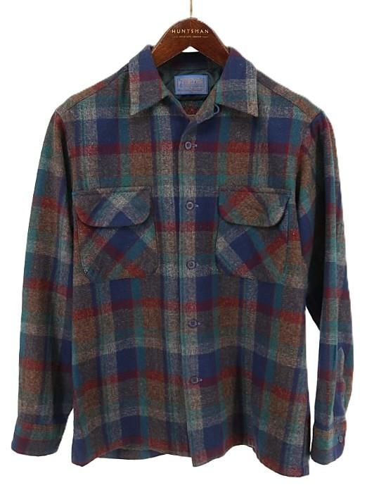 コメント:80年代のPENDLETON社製ボードシャツです。 クールな寒色系の配色、アウターの中に着てもライトアウターとして羽織っても存在感が出せる一品です。