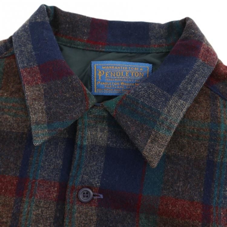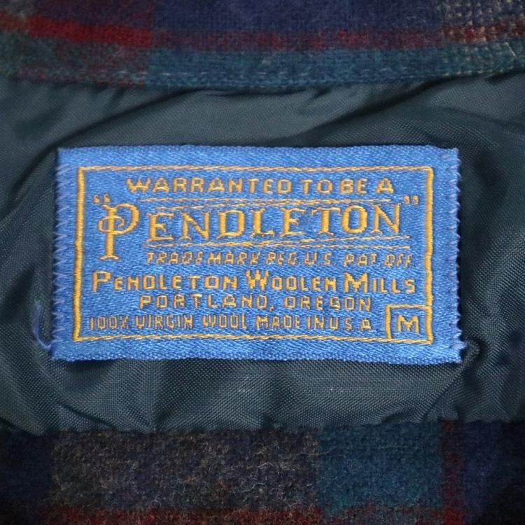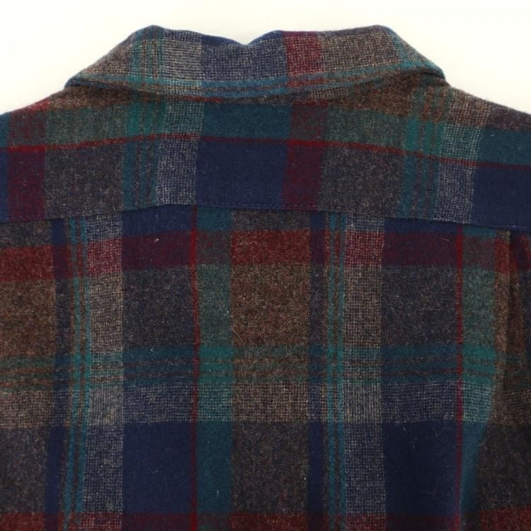 古着 80’s USA製 PENDLETON ペンドルトン 開襟 ループカラー チェック ウール ボードシャツ 長袖シャツ / メンズM