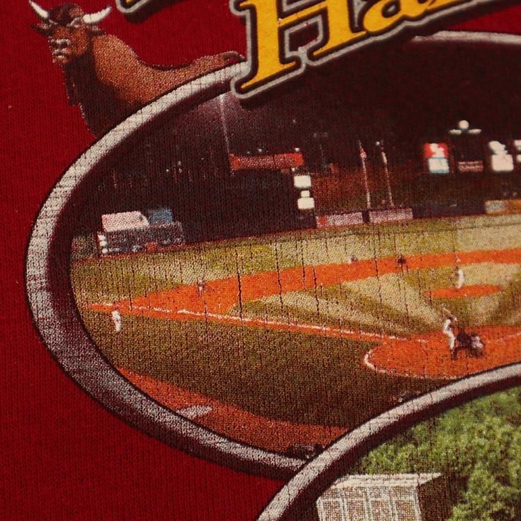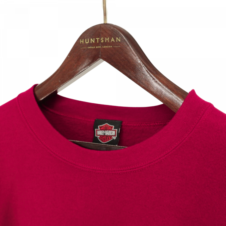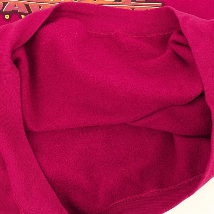 コメント:00年代のHARLEY-DAVIDSONのボルドー色のスウェットです。 R.K.STRATMAN 社製作。 スエット トレーナーではなかなか見かけないピクチャープリントをバックに。 フロントはロゴのみのシンプルなデザインですが、そこは映画のタイトルみたいにかっこいいタイポグラフィ。