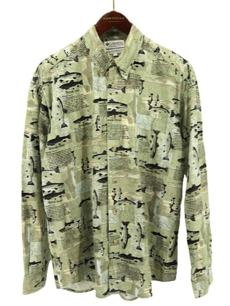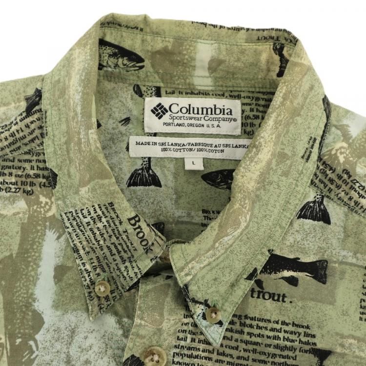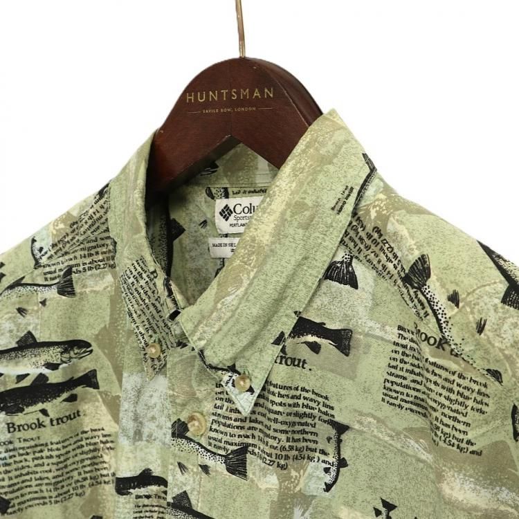 古着 90's~00's COLUMBIA コロンビア 総柄 ブルックトラウト柄 ボタンダウン BD 長袖シャツ / メンズL