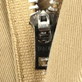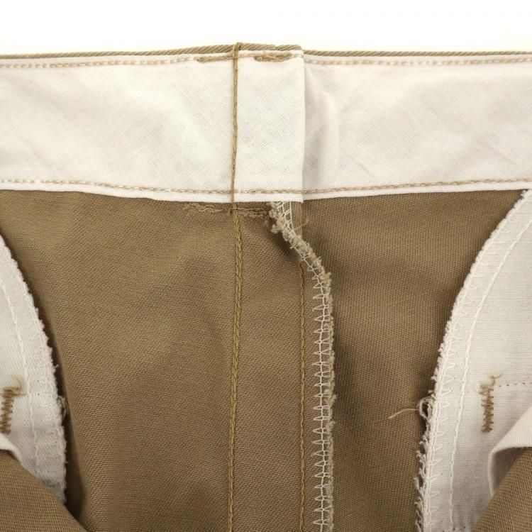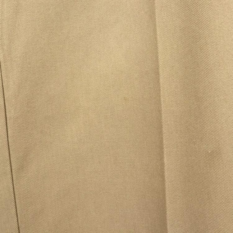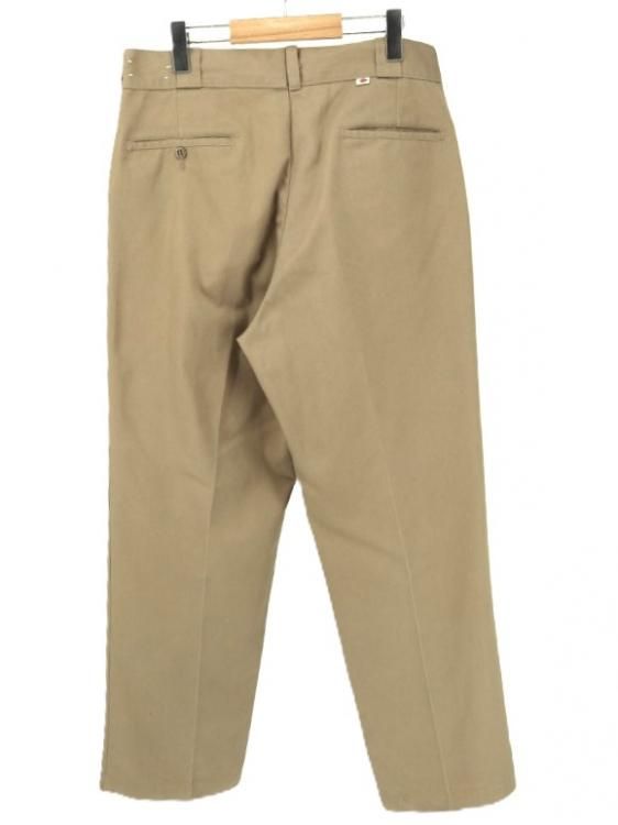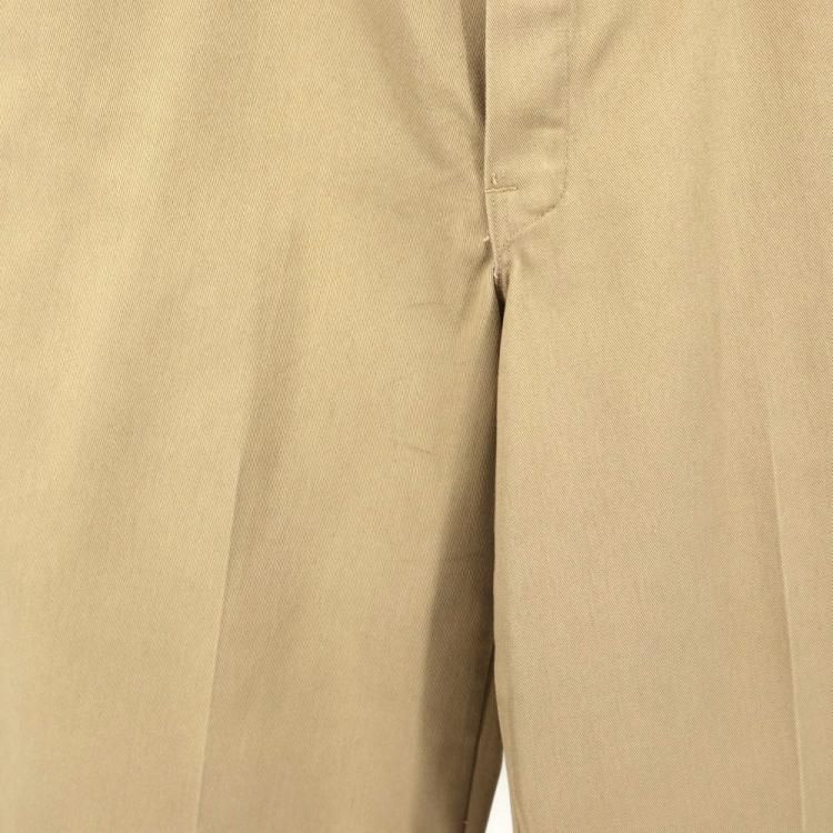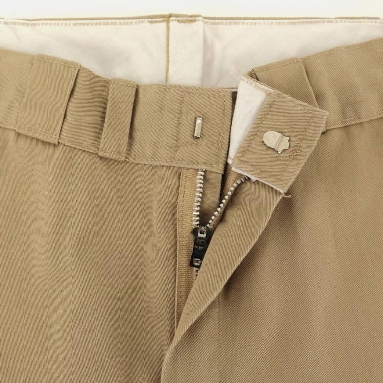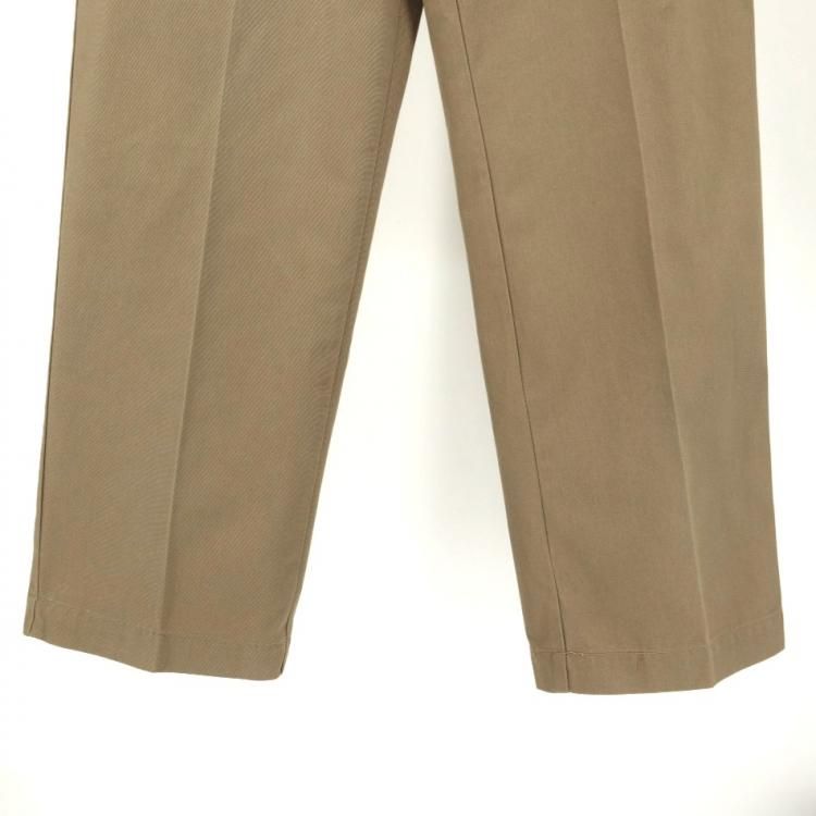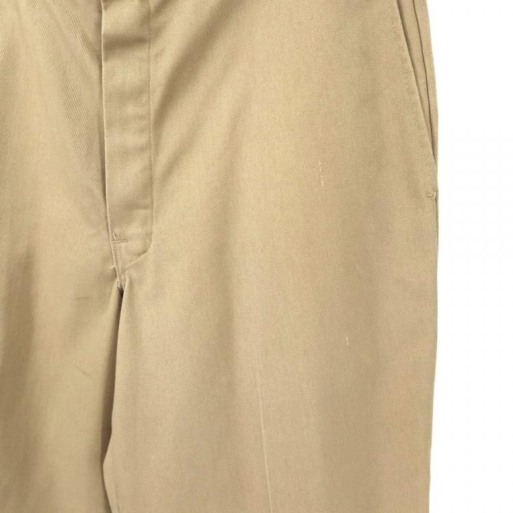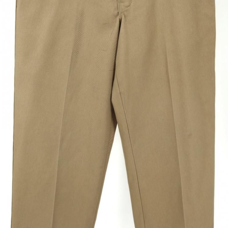 コメント:80年代 Dickiesのワークパンツ です。 TALONのアルミジッパー使用のフロントのセンターには少し細目のベルトループが付きますので、古い方のものになります。 色はベージュの少し濃いカーキになります。