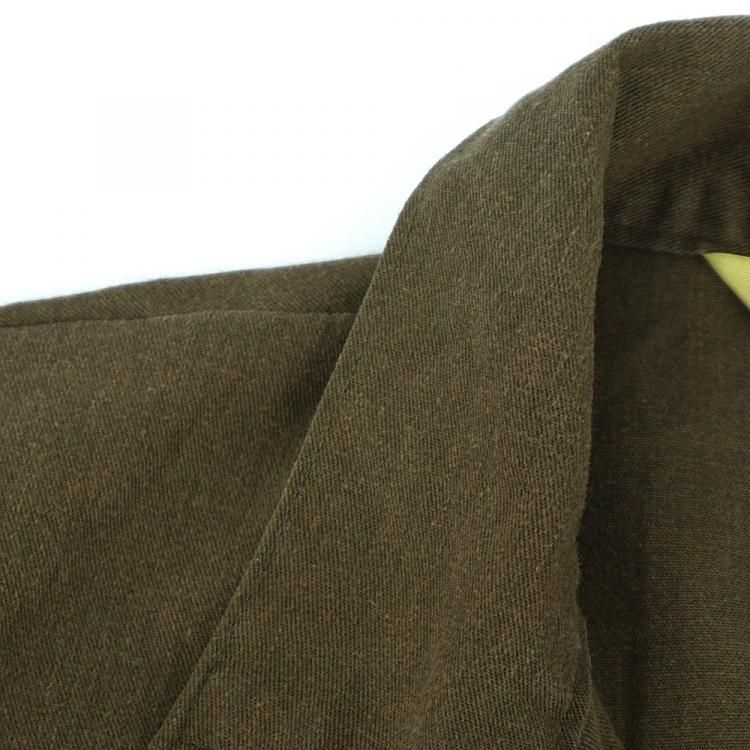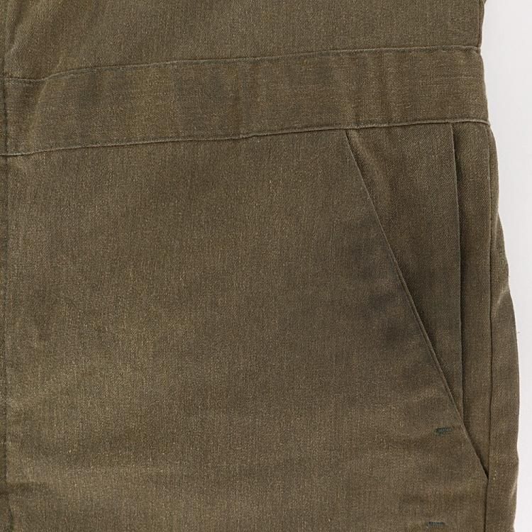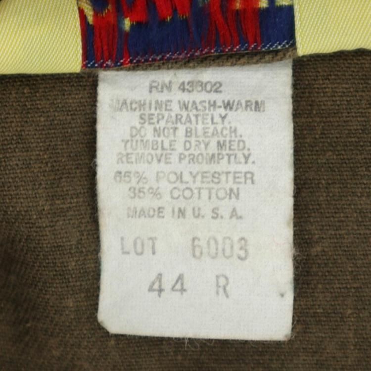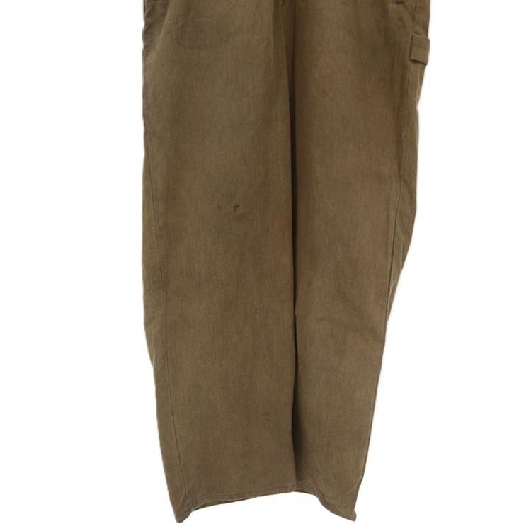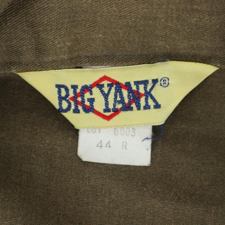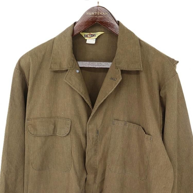 コメント:恐らく70年代あたりのヴィンテージ ビッグヤンクのツナギです。 某有名古着店のディレクターの方が実名復刻していたものを手掛ける事になり話題を集めるブランド。 こちらはディッキーズのワークパンツと似た少し薄手の生地感のツイルで、トップボタンは月桂樹のドーナツボタン、スコービル社製の両爪ジップを使用した物になります。 Work-matesラインではなく、本家のBIG YANK のタグなのは嬉しいポイントです。 汚れがありますが雰囲気良く、サイズ感も多くの方が望まれる辺りだと思いますのでオススメのアイテムです。