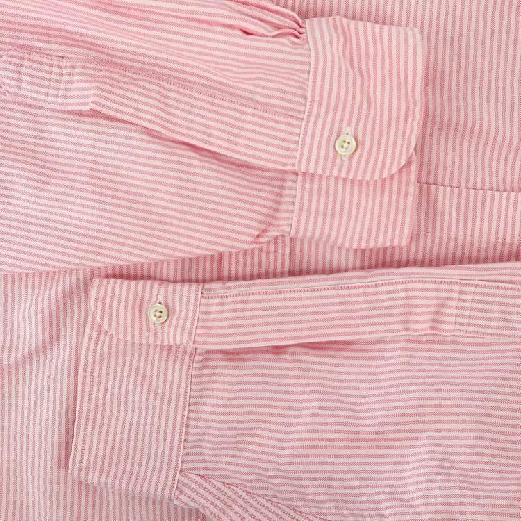 古着 90’s USA製 Brooks Brothers ブルックスブラザーズ Makers コットン ホワイト×ピンク ストライプ ポロカラー BD 長袖シャツ / 16 1/2 (メンズL相当)