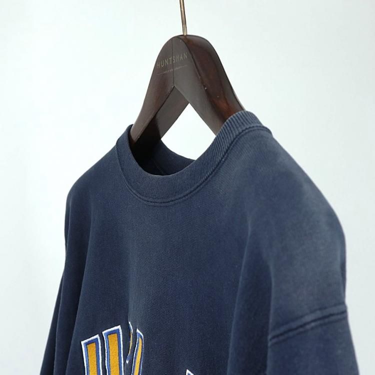 コメント:90年代Champion社製 スウェットシャツ。 こちらは人気のUCLAモノ! しかもロゴが刺繍になっており、スクールカラーの黄文字に青と白の2重の縁取り。 刺繍だとプリントと違って少し立体感が生まれますね。 サイズ的には身幅も残っていますので、良いシルエットです。