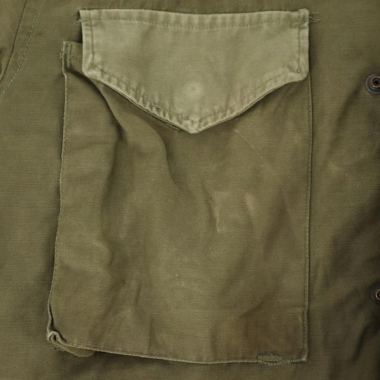 コメント:60年代ヴィンテージ M65 フィールド ジャケットです。 こちらは肩にエポレットが付かない1stで、僅か1年間という生産期間の短さから大変希少なモデルです。 しかも胸ポケットのフラップの色がボディカラーと異なり、3トーンと言うかなりレアな個体。 一番色が薄いフラップに関しては幅も合っていないと。 アメリカらしいと言えばアメリカらしい。