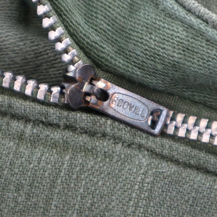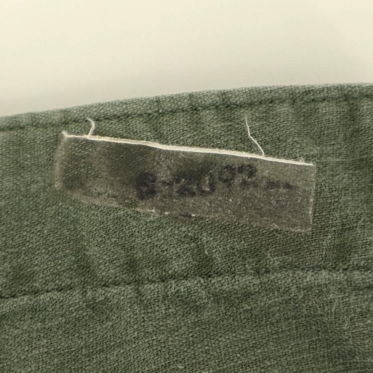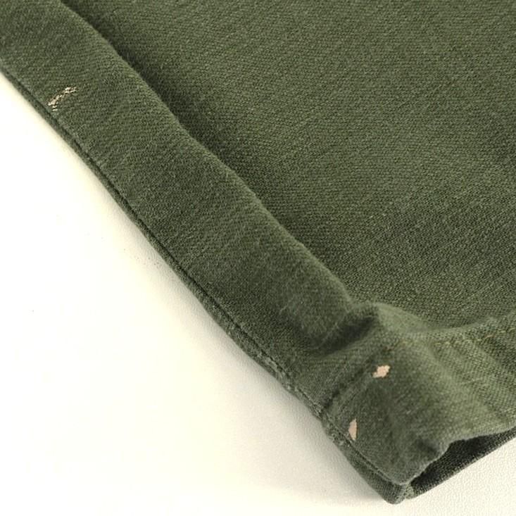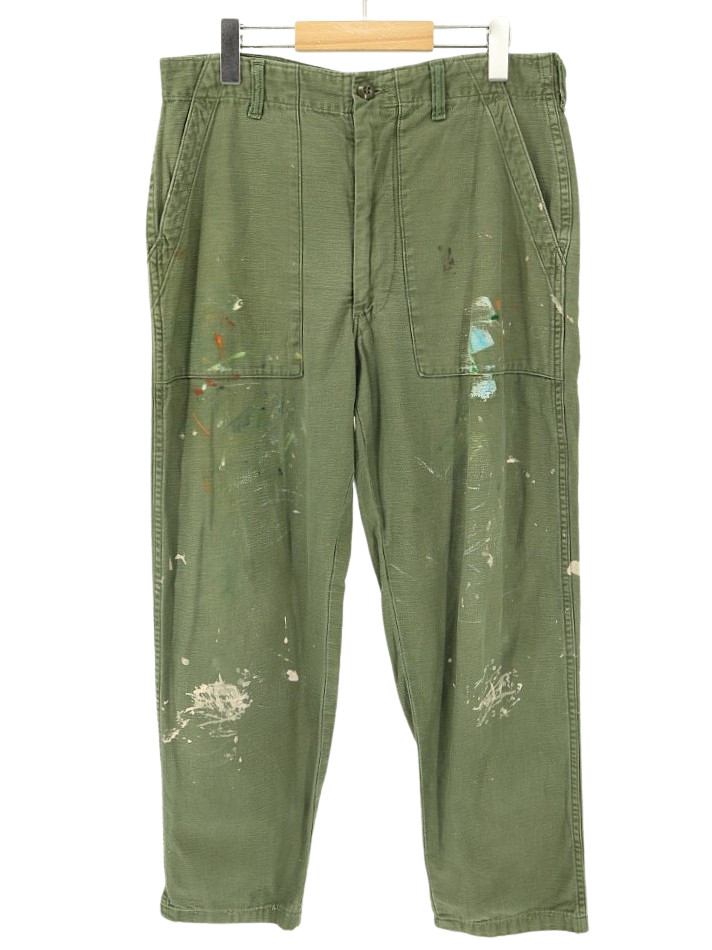 コメント:おそらく69年コントラクト TROUSERS,MEN'S COTTON, SATEEN, O.G. 107, TYPE 1 。 いわゆるベイカーパンツです。 こちらはデニムのラングラーでお馴染みのブルーベル社製。 かなりペンキ汚れがありますが、ペールブルー・グリーン・ブラウン・ホワイトと多色にわたっており、やりすぎていない感じも雰囲気があってプラス要素になるのかと思います。
