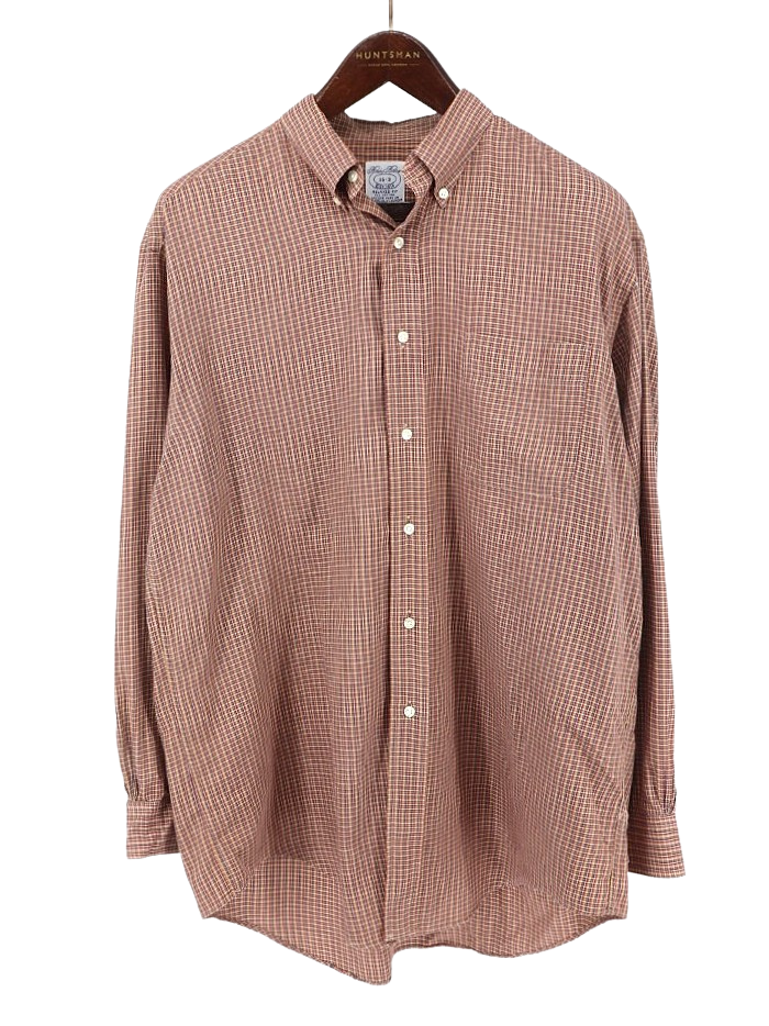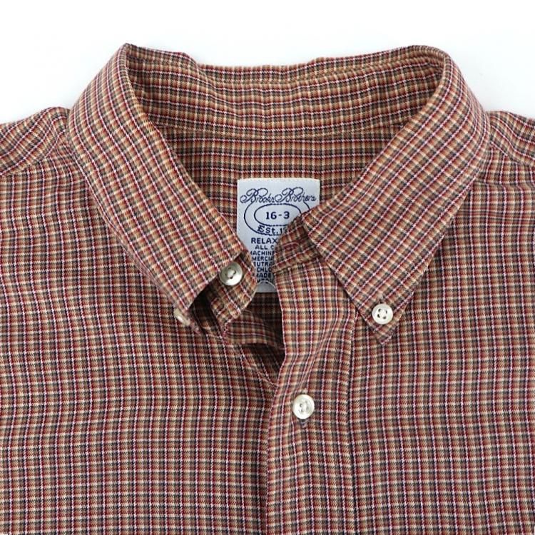 コメント:90年代Brooks Brothers社製 素材や縫製にこだわったライン’’Est.1818 ’’ の長袖シャツです。 しなやかで柔らかい生地をピッチの細かい丁寧な縫製で仕上げられたシャツは着ていると上質なシャツだと思わせてくれる事でしょう。 チェックが細かいとカジュアルになりすぎない印象です。