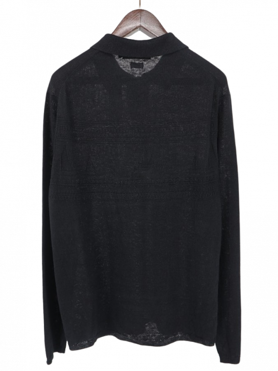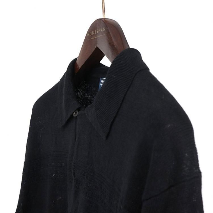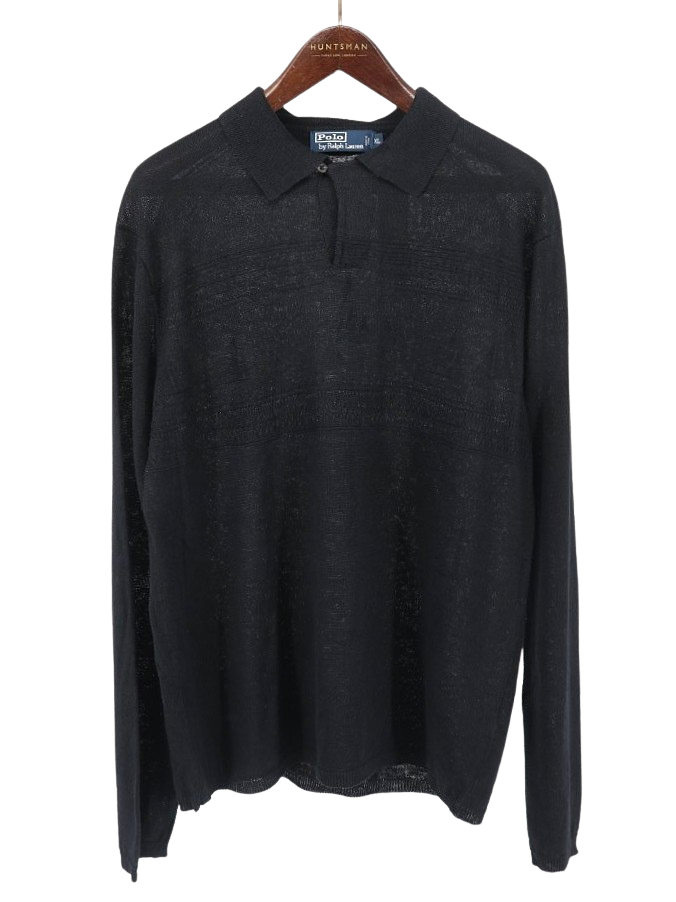 コメント:ポロ ラルフローレンの長袖ポロシャツです。 こちらは光沢あるリネンで編まれたニット素材で、ループ留めの変則スタイル。
