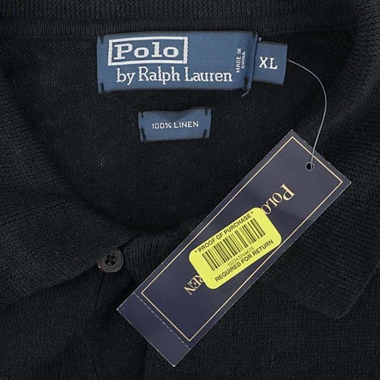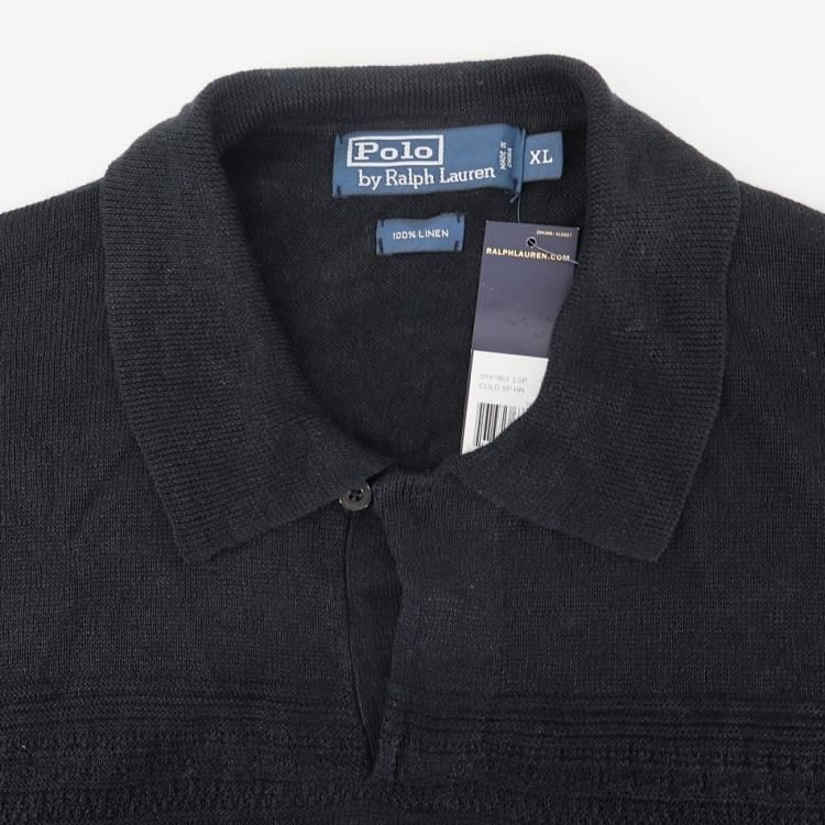 古着 未使用 タグ付き デッドストック Polo by Ralph Lauren ポロ ラルフローレン ブラックリネン ニット マリン モチーフ 長袖 ポロシャツ / メンズXL