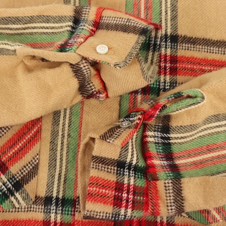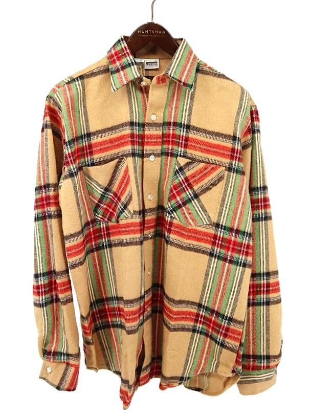 コメント:70年代 ヴィンテージ モンゴメリーワードのネルシャツ。 しっかりとした厚手のコットンネルで大き目のタータンチェック柄がカジュアルで普段使いにちょうど良いシャツです。