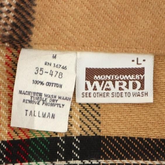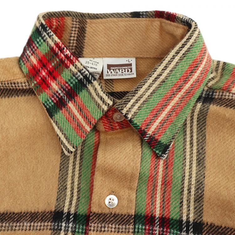 古着 70's ビンテージ MONTGOMERY WARD モンゴメリーワード コットン チェック 長袖 ヘビー フランネルシャツ / メンズL