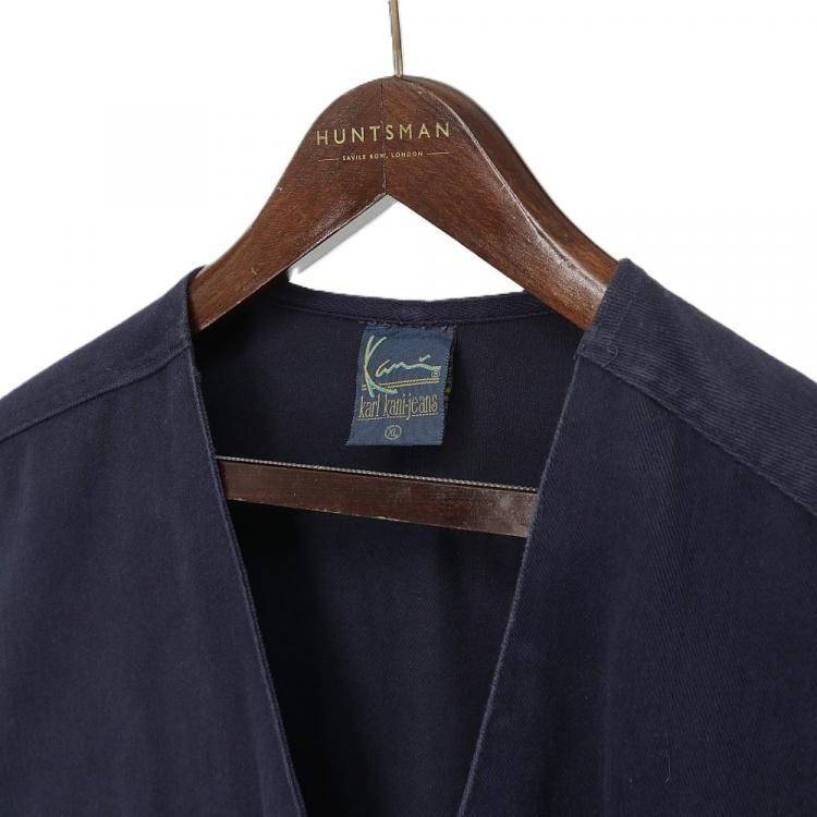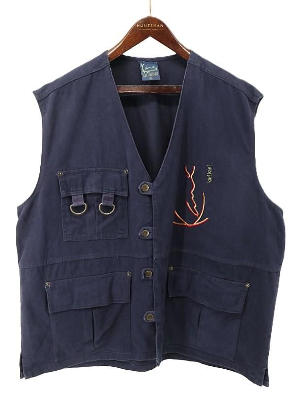 古着 90's Karl Kani jeans カールカナイ ジーンズ ロゴ刺繍 D環付き ネイビー コットン ツイル ベスト / メンズXL