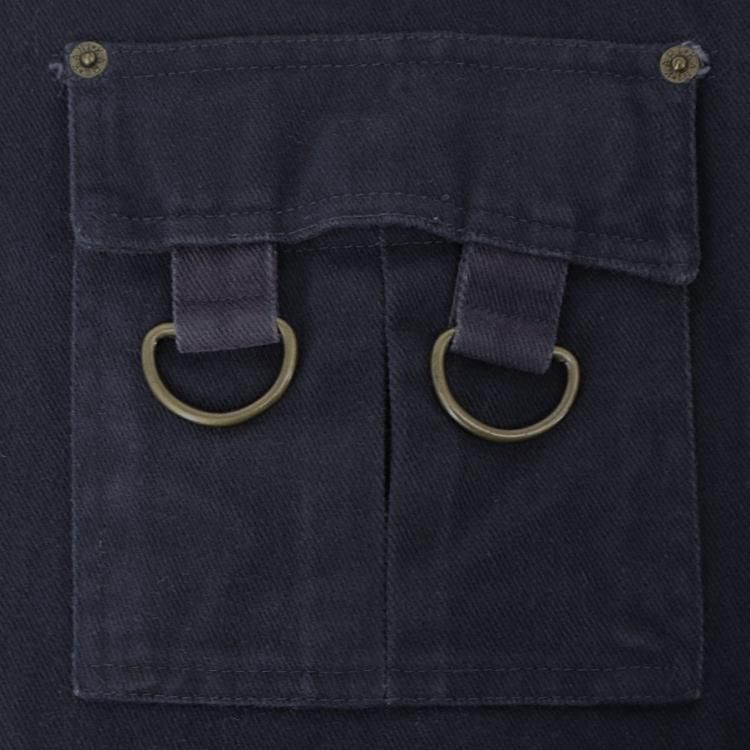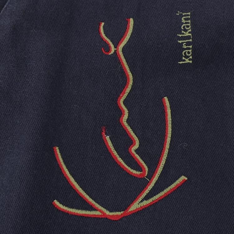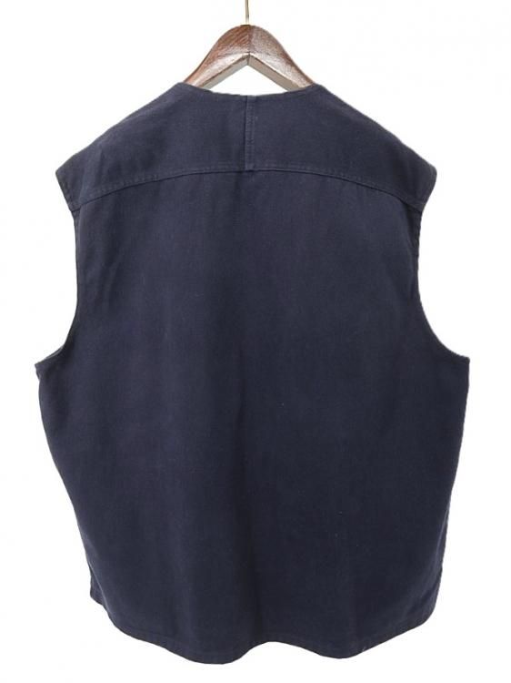 コメント:90年代 カールカナイ のベストです。 カールカナイ は2PACも愛用していたブランドで、こちらはコットンツイル生地にリベット補強の3つポケットでフラップにD環、フロントはボタンのループ留め、左胸に大きめのロゴ刺繍と、アンノーマルな使用が当時のブラックカルチャーに受けたのでしょう。 サイズはかなり大きいので、コートやダウンジャケットの上からレイヤードを楽しめそうです。