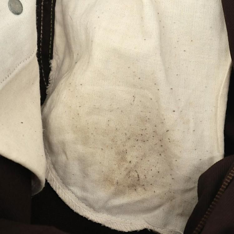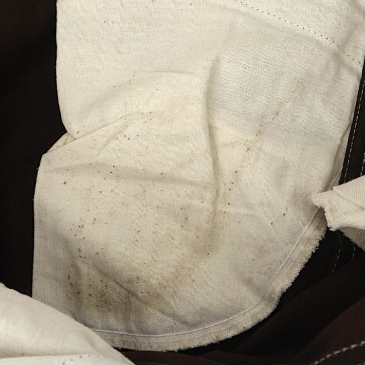 若干の使用感、右足前後に汚れと内側ポケットにシミがあります。
