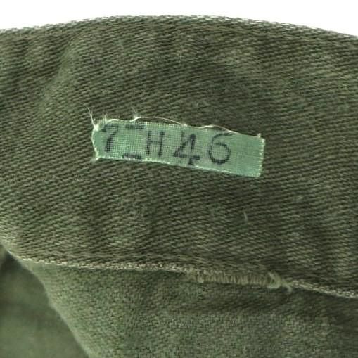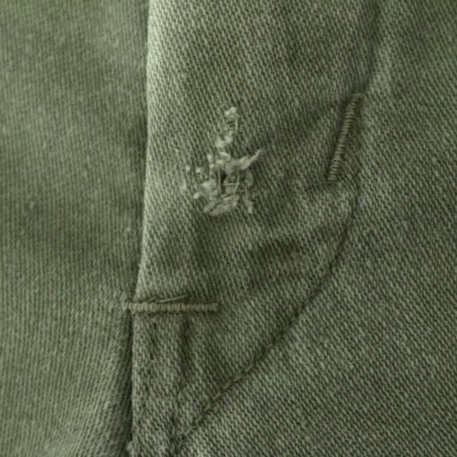 全体的に使用感、所々に汚れとシミ、股下に補修跡、股間付近と左裾に破れがあります。