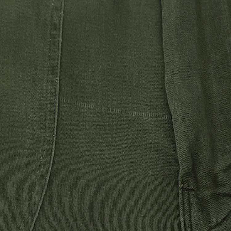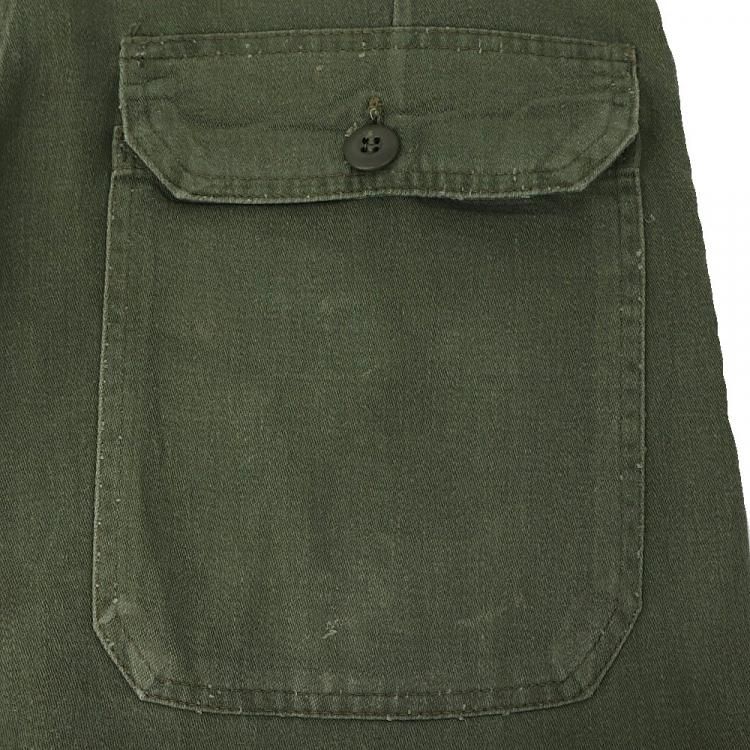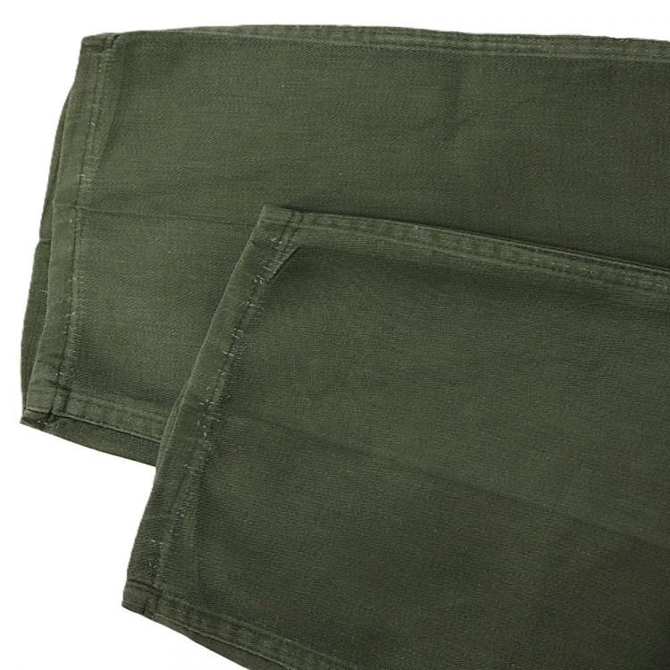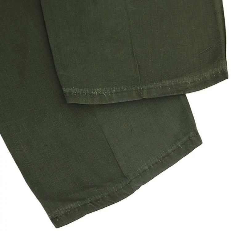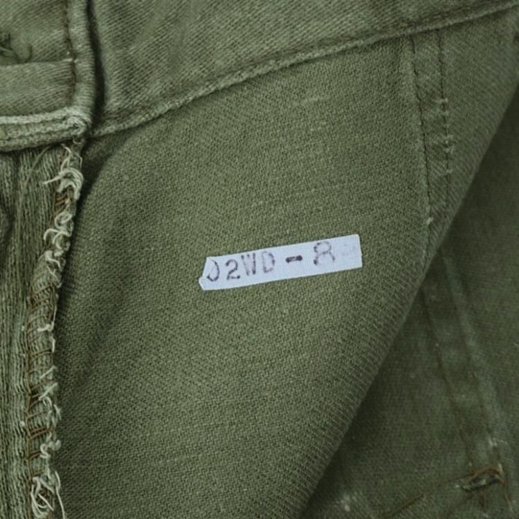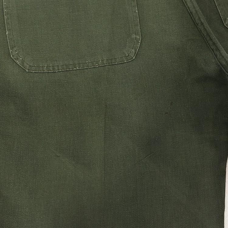 コメント:おそらく60年~70年あたりの ヴィンテージ ベイカーパンツです。 こちらは民生品になります。 生地は糊付けされており、パリッとした質感をしています。 IDEALのカムロックジッパー、トップボタンはUFOボタンを使用。 インシーム・アウトシーム共にダブルステッチです。 左お尻ポケットは艶あり平ボタンに替えられています。