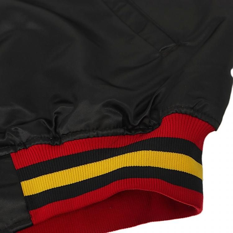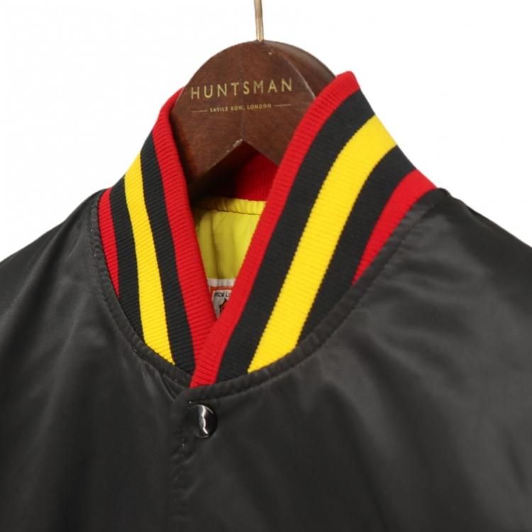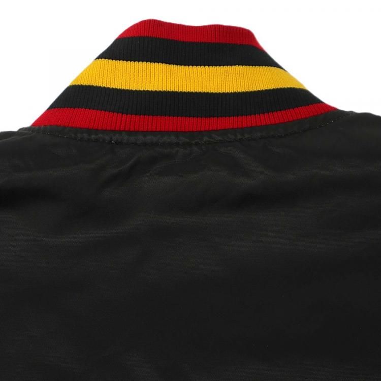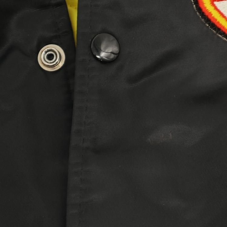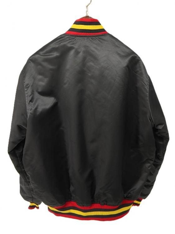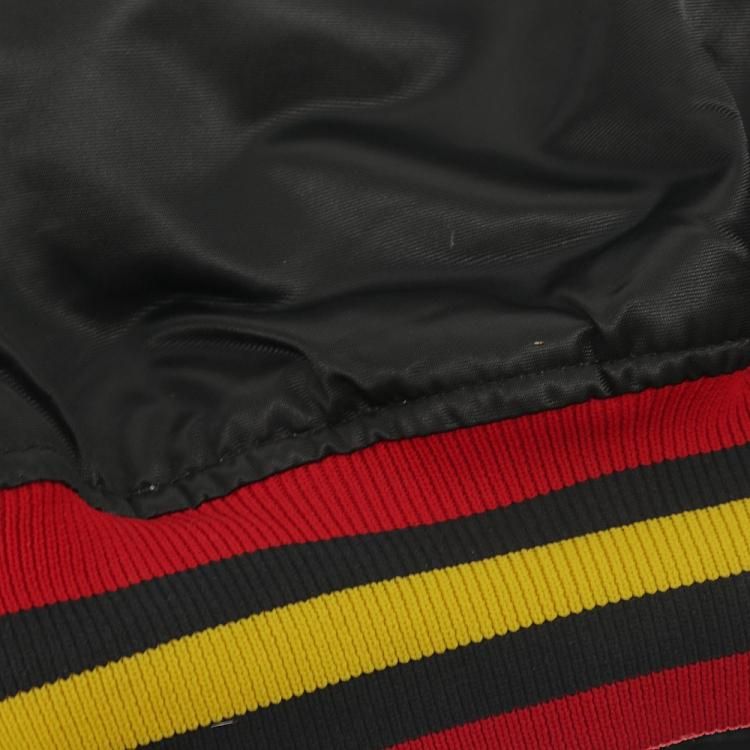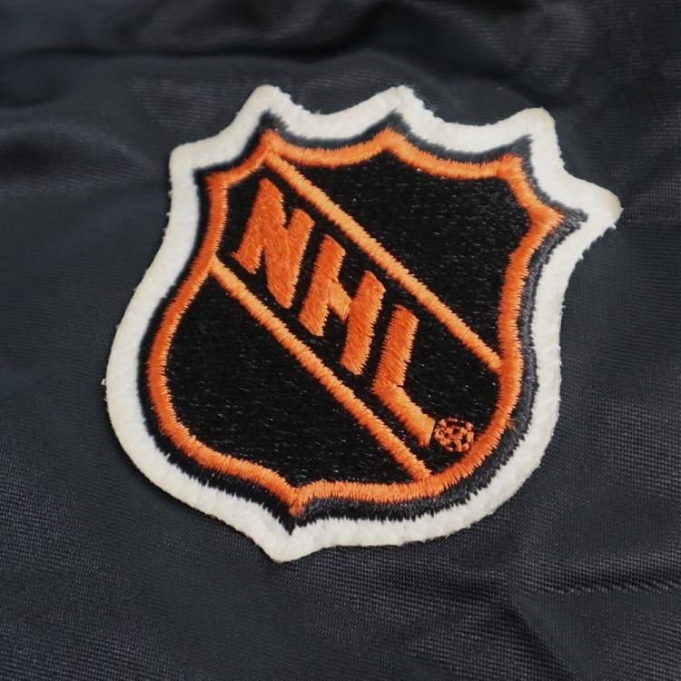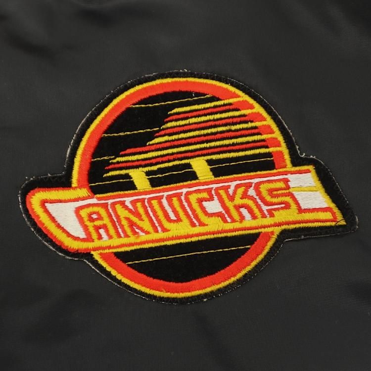 コメント:80~90年代のスターター製のスタジアムジャンパーです。 こちらはNHL所属バンクーバー・カナックスの1978~1997年の間に使用した旧ロゴ フライングスケートのワッペンが胸に付き、リブはワッペンと同じカラーのボーダーとなっています。 左腕にNHLのワッペン、バックは無地になります。 主張が激しくないブラックのスタジャンは使い勝手も良いでしょう。