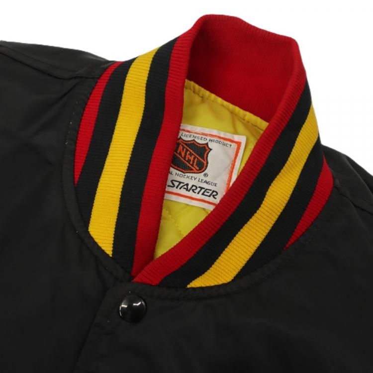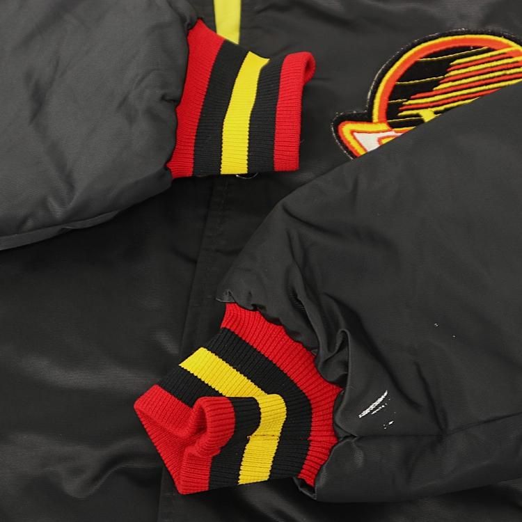 古着 80~90's USA製 STARTER スターター NHL CANUCKS バンクーバー カナックス 旧ロゴ キルティングライナー サテン スタジャン / メンズXL