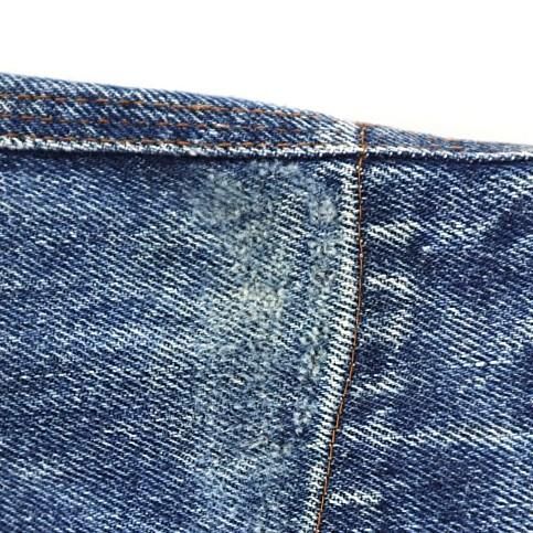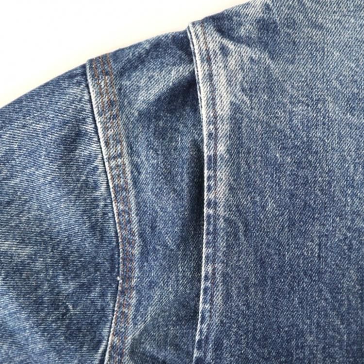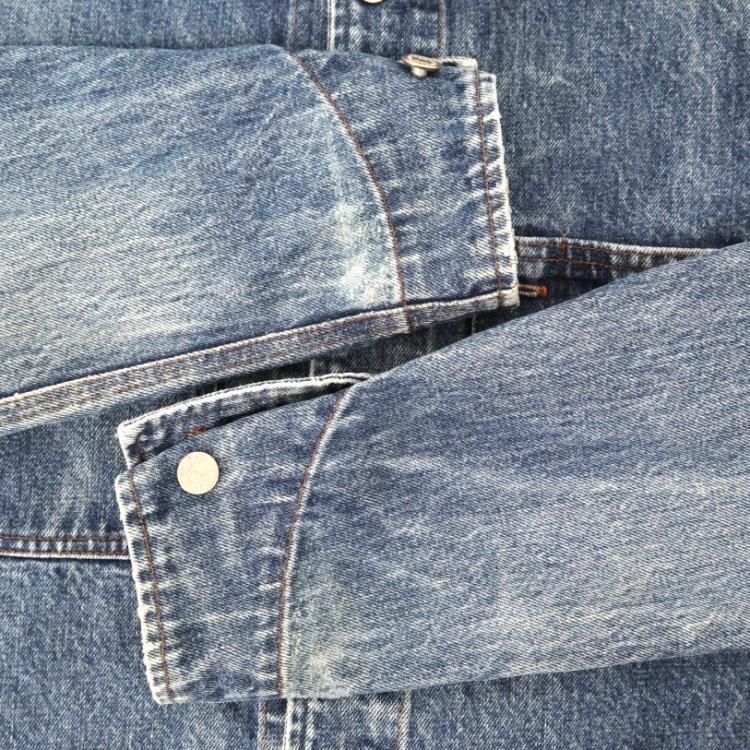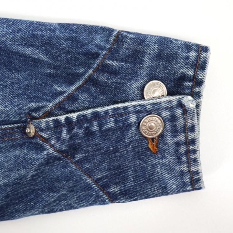 全体的に使用感、肘部分の色褪せ、両袖裾にダメージがあります。
