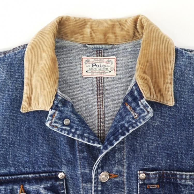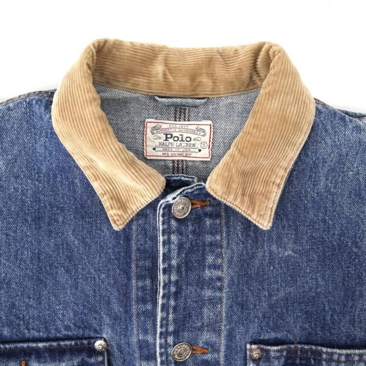 古着 80's USA製 Polo by Ralph Lauren ポロ ラルフローレン 白タグ 2ポケット コーデュロイ切替 デニム ジャケット / メンズS
