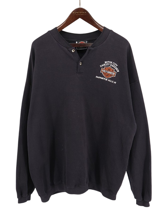 古着 90's~00's HARLEY-DAVIDSON ハーレーダビッドソン Leeボディ バー&シールド刺繍 ヘンリーネックタイプ ビッグサイズ スウェットシャツ / メンズXXL