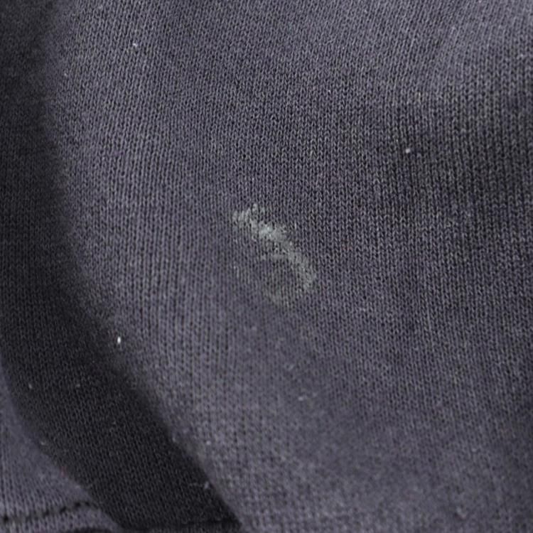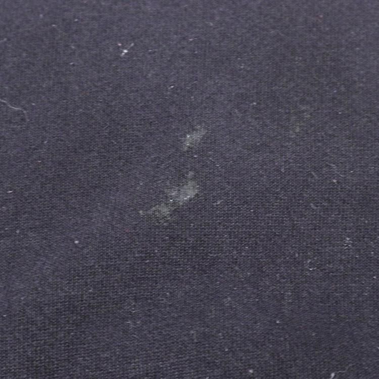 全体に色褪せと毛玉、正面下部を中心に汚れが複数あります。