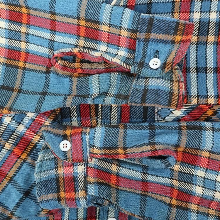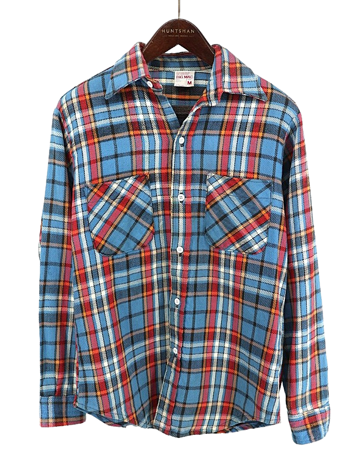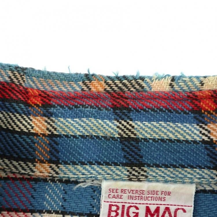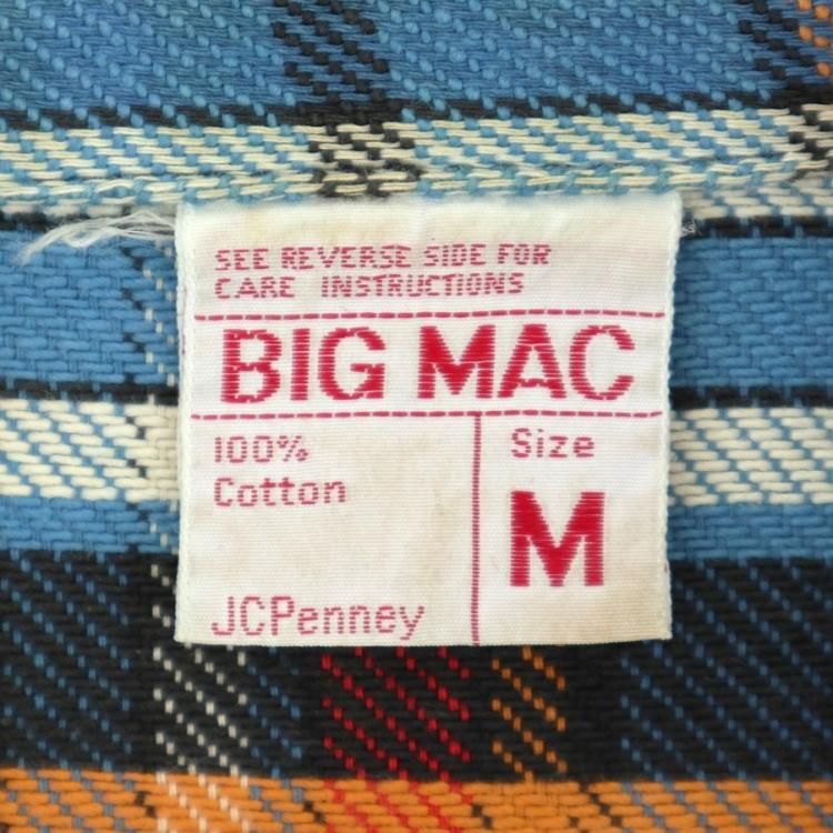 古着 70’s ビンテージ BIG MAC ビッグマック 単色タグ コットン100% ブルー×レッド×オレンジ チェック 長袖 ヘビー フランネルシャツ / メンズM