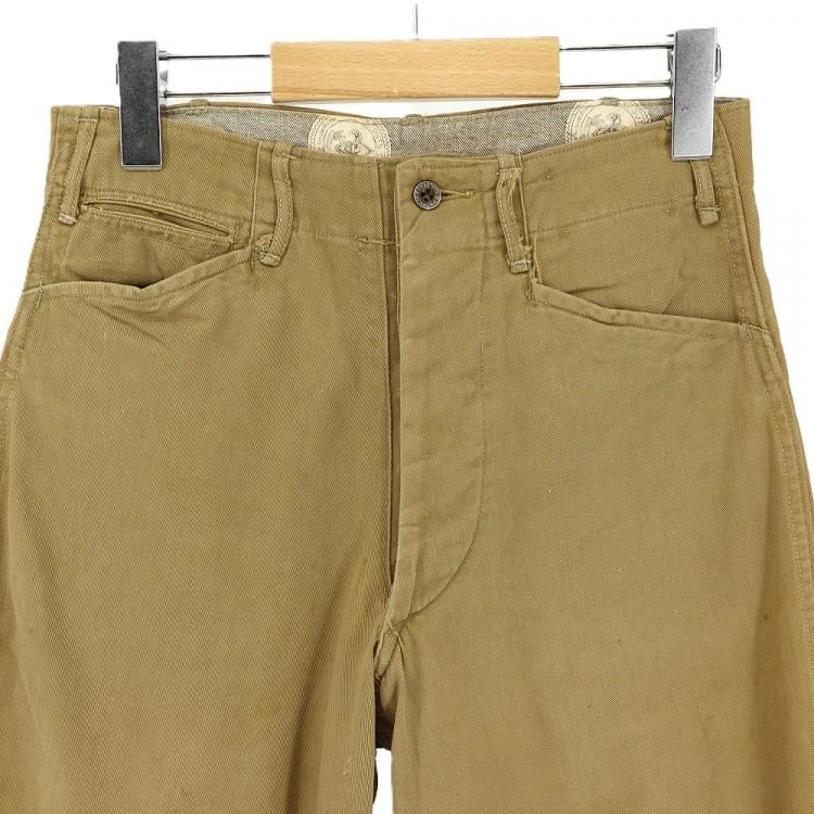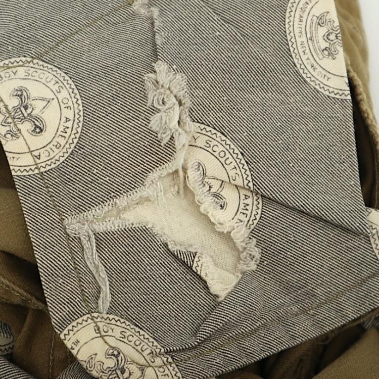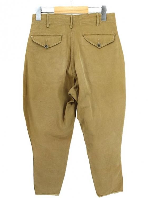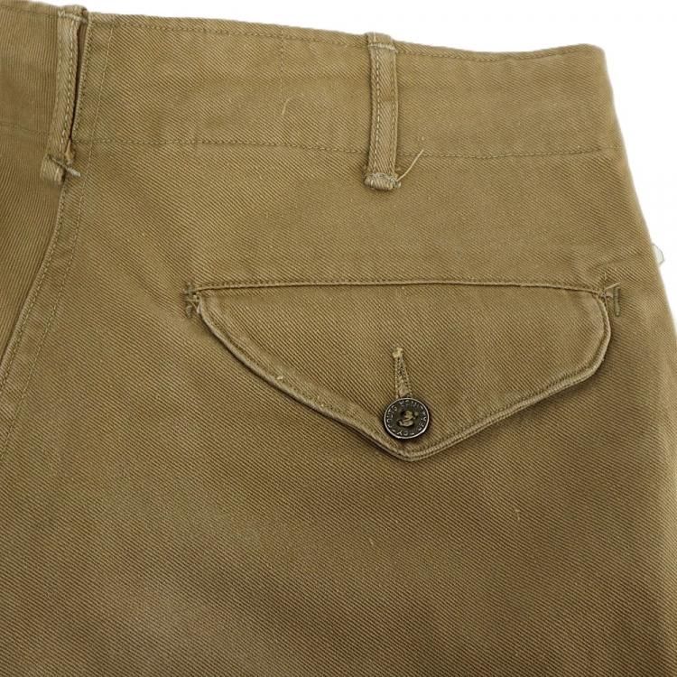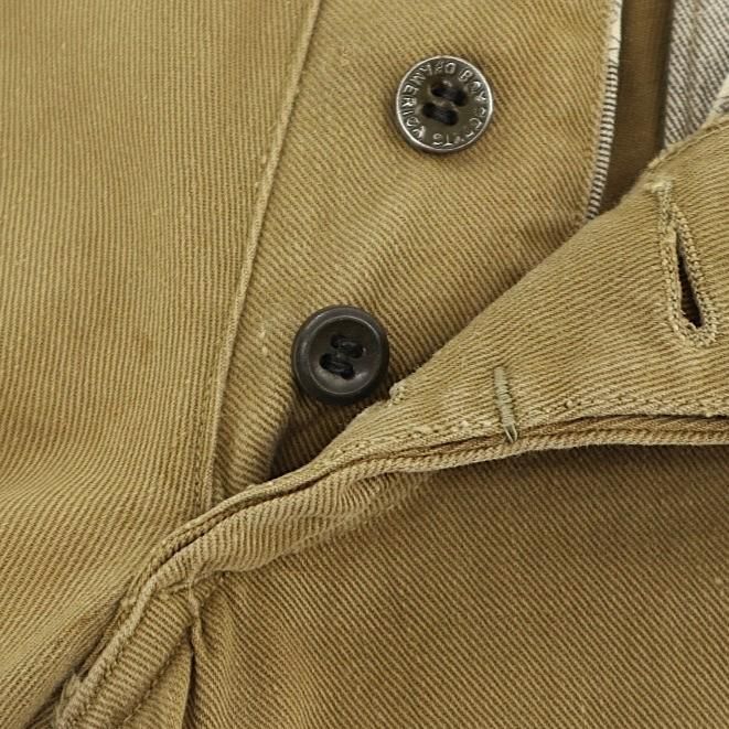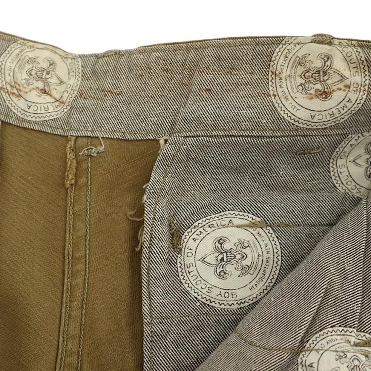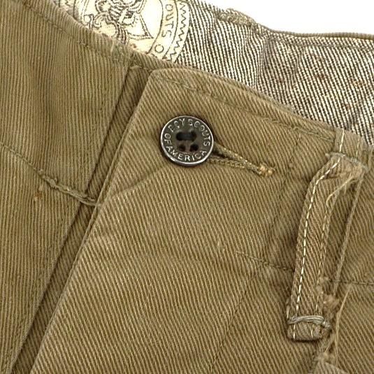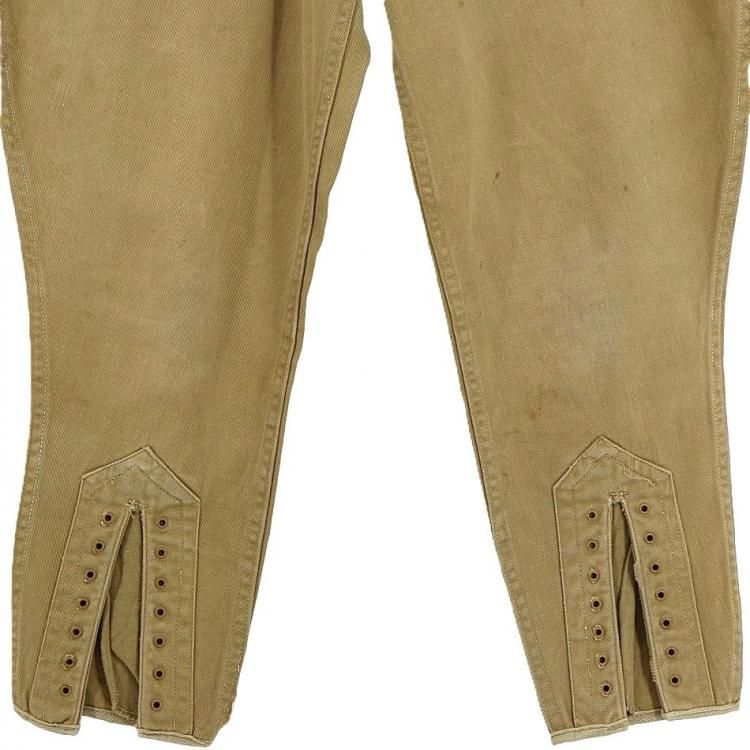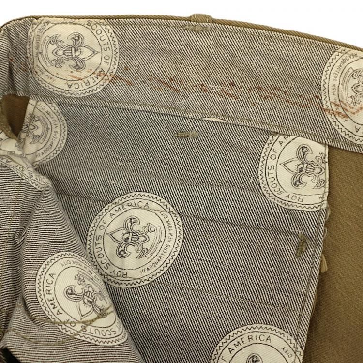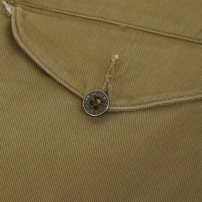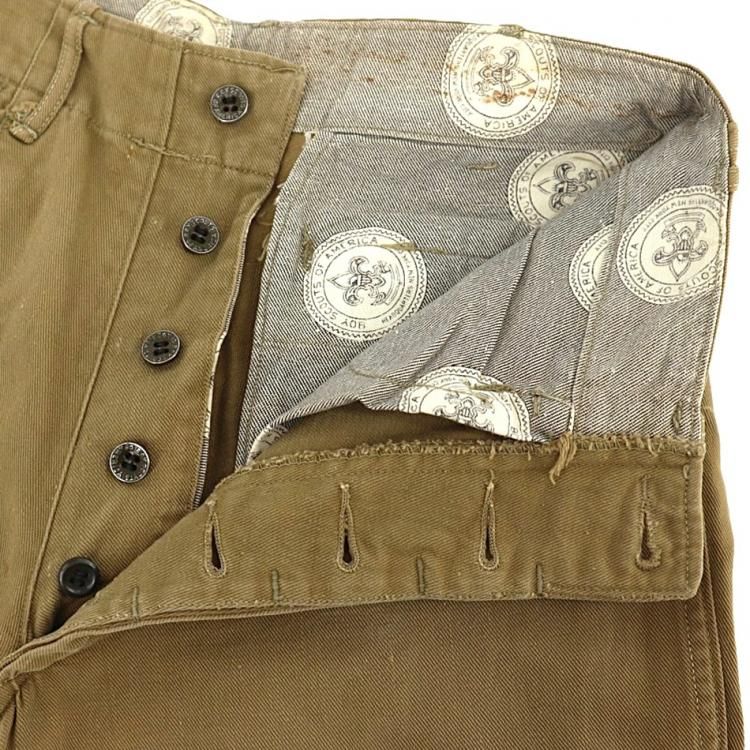 コメント:40年代あたりのヴィンテージ ボーイスカウト のジョッパーパンツです。 両玉縁のウォッチポケットにメタルボタンのボタンフライ、ウエストバンド一体型、インシーム・アウトシーム共にダブルステッチ。 40年代のヴィンテージとして観賞用やコレクションにいかがでしょうか。