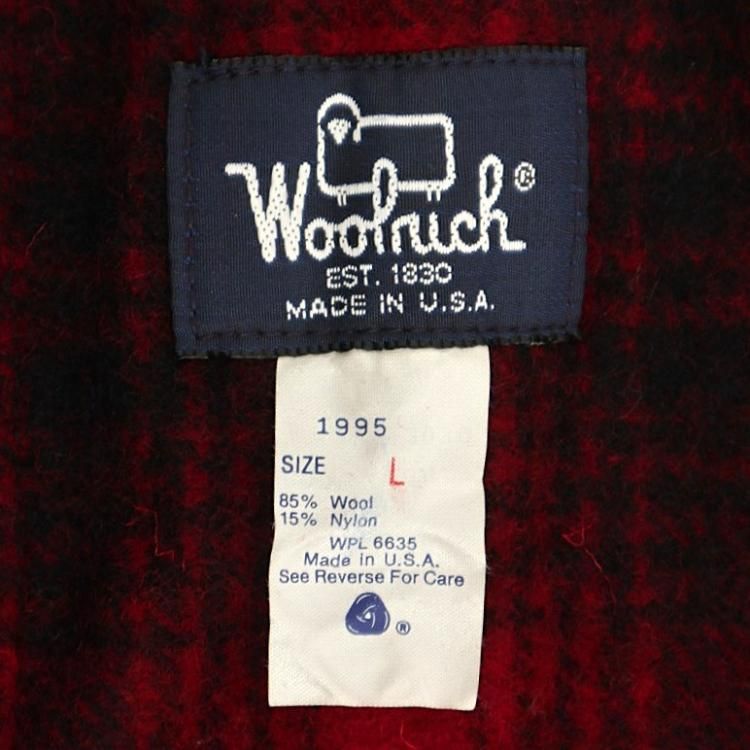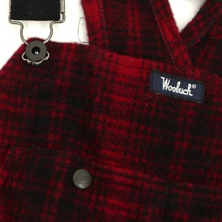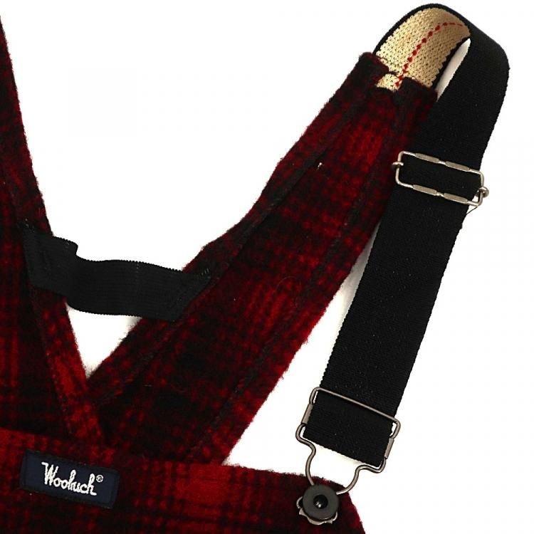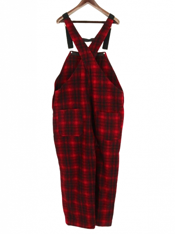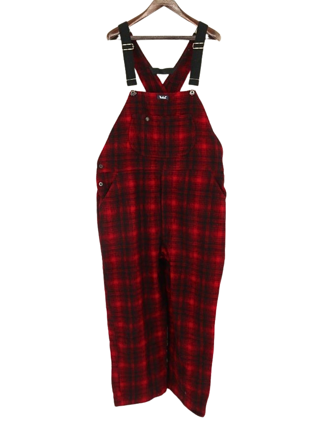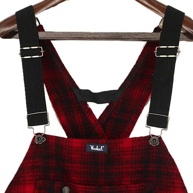 古着 90's USA製 WOOLRICH ウールリッチ 紺タグ 赤系 チェック柄 ウール オーバーオール / メンズL
