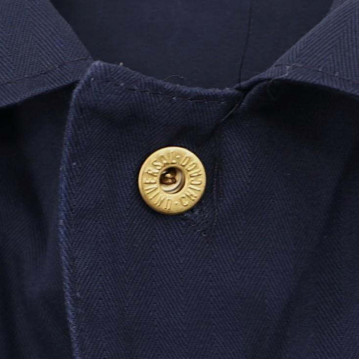 コメント:ユニバーサルオーバーオールのツナギになります。 こちらはコットンのヘリンボーンツイル生地を使用したものになり、着こむとストライプ柄の様な表情へと変化するのが醍醐味です。 アメリカ製でドーナツボタンなのも嬉しいですね。