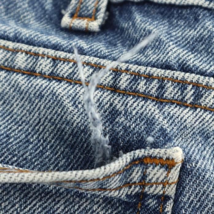 紙パッチのダメージ、右前・右後のポケットにダメージ、両裾にダメージがあります。