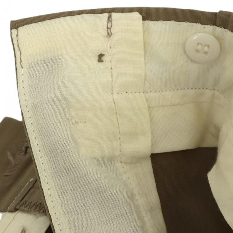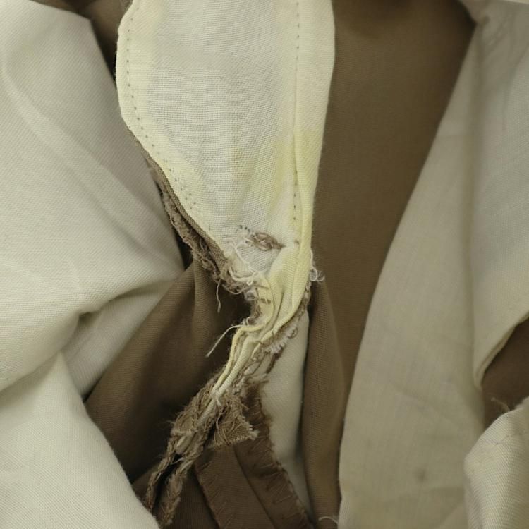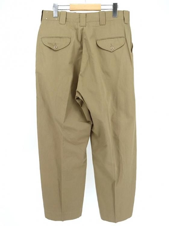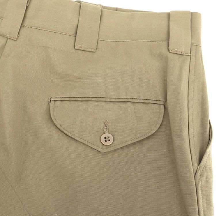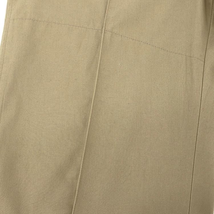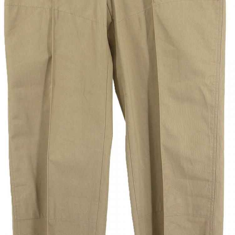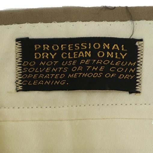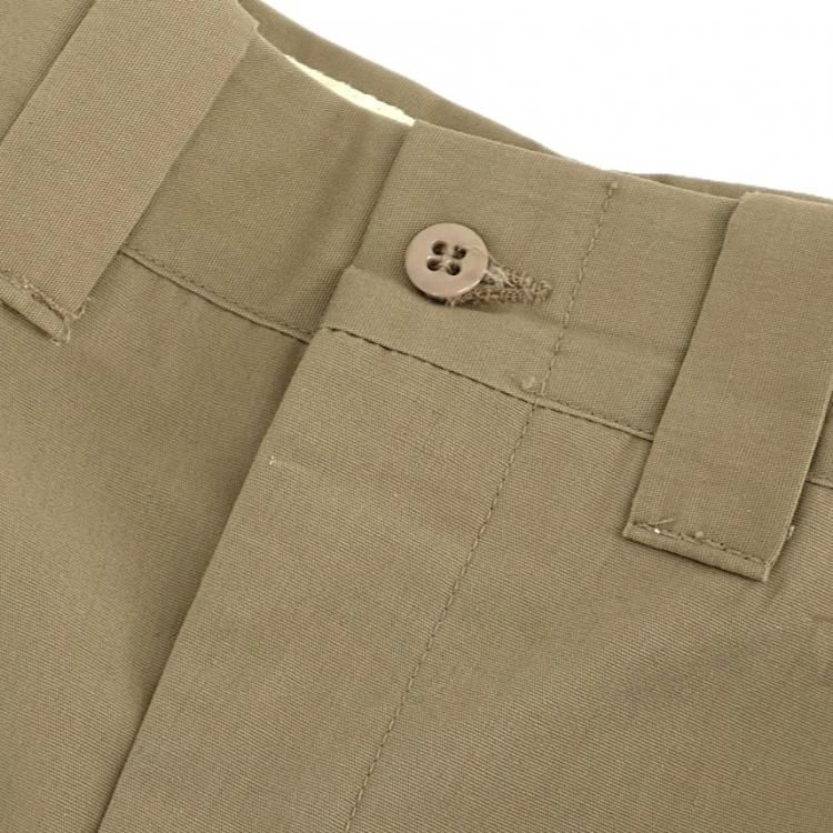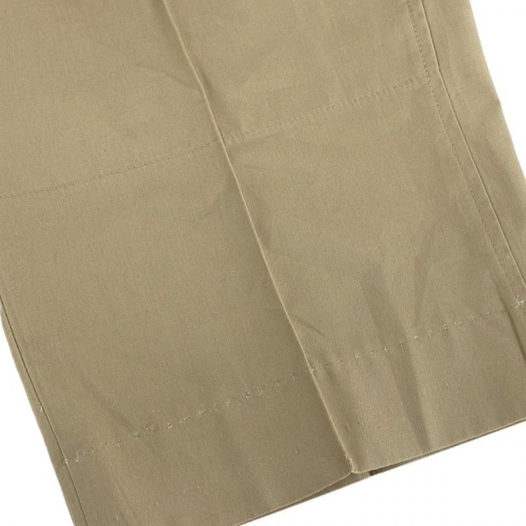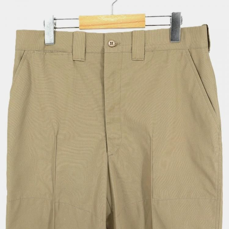 コメント:60~70年代のヴィンテージ LLビーンのワークパンツです。 化繊を多く含んだ生地でアーミーチノの様な形、前面内側に腿から膝下、後ろ面内側にお尻から膝まで補強されています。 このパンツで面白いのがクリースステッチが入っている点です。 センタークリースが入るとキッチリ感が出ますね。