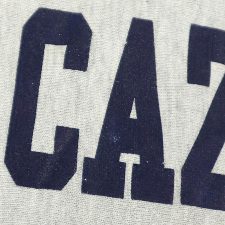 コメント:90年代Champion社製リバースウィーブのスエットフーディーです。 プリントは現在閉校してしまったカゼノビア大学。 霜降グレーのフーディーなら幅広く何にでも合うので活躍してくれる事でしょう。