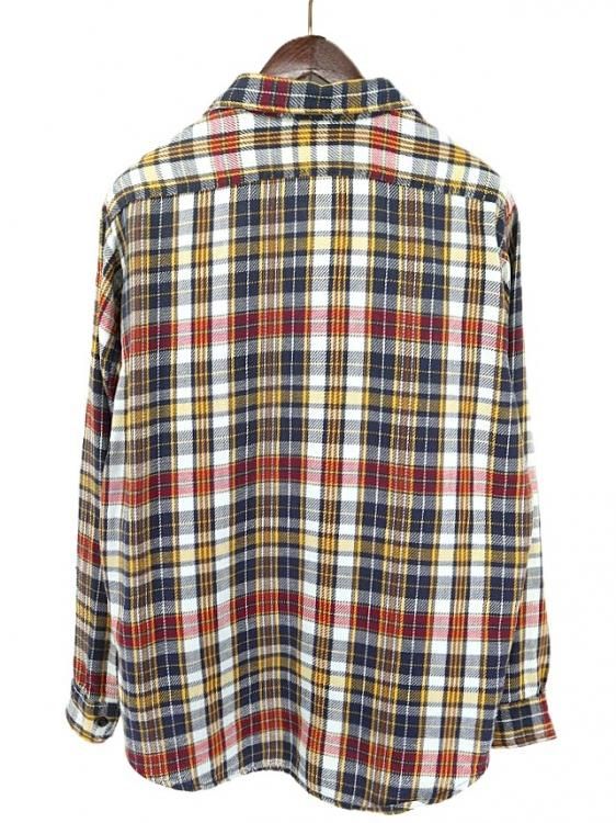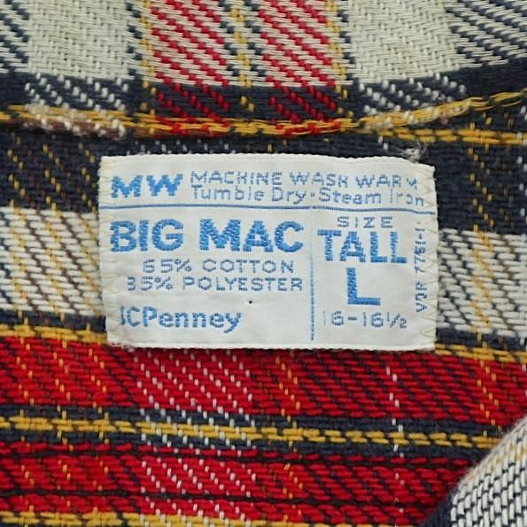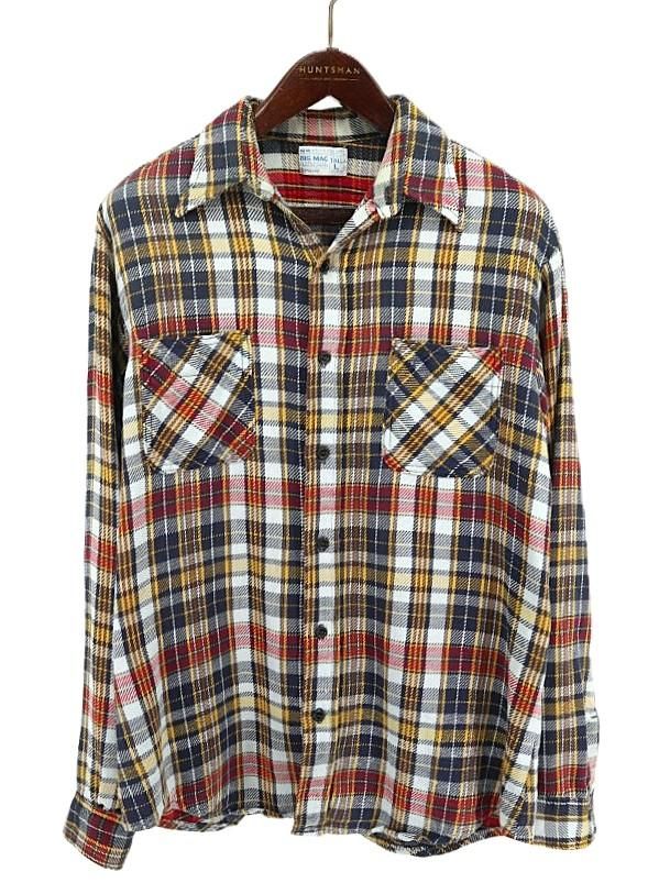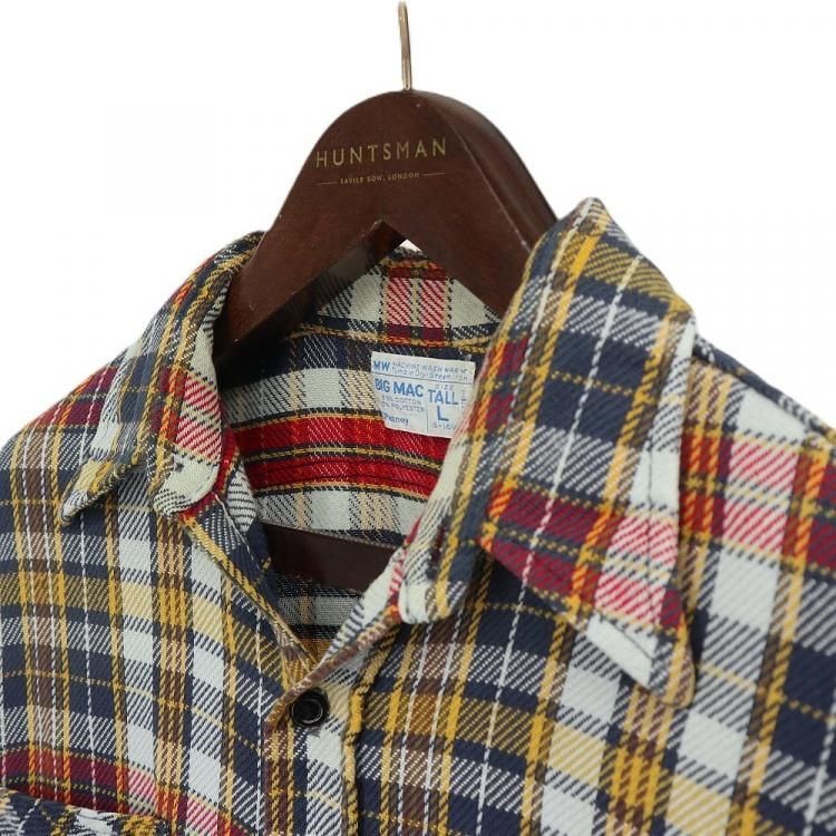 古着 70’s BIG MAC ビッグマック ビンテージ 単色タグ ネイビー×イエロー×レッド チェック 長袖 ヘビー フランネルシャツ / メンズL