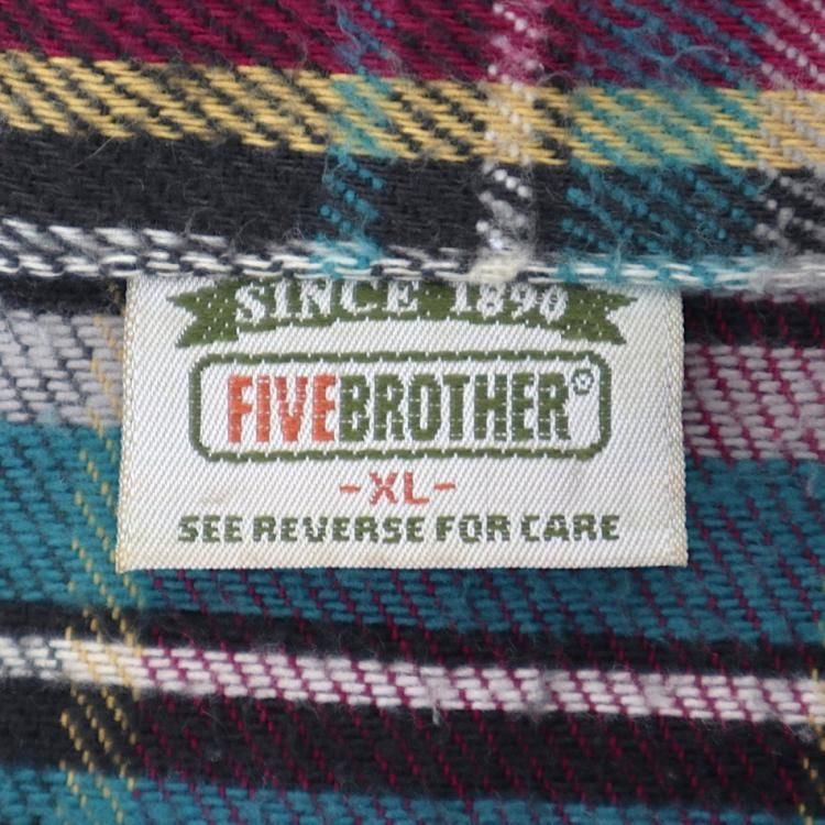 古着 90's USA製 FIVE BROTHER ファイブブラザー ボルドー×ターコイズブルー チェック コットン 長袖 フランネルシャツ / メンズXL