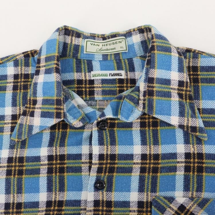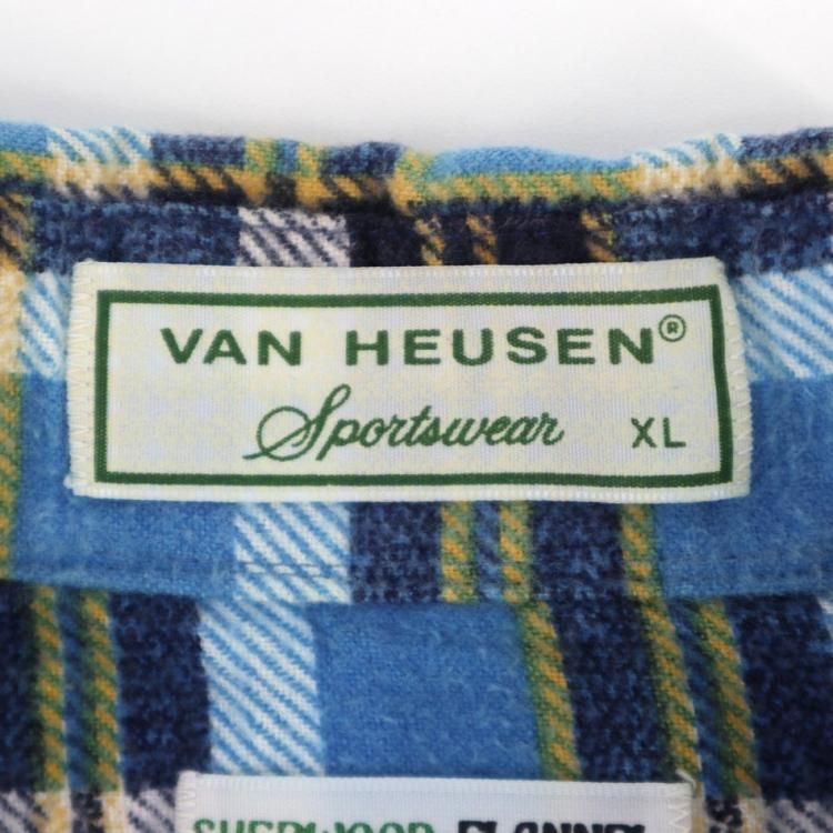 古着 70's~80's ビンテージ VAN HEUSEN sportswear ヴァン・ヒューゼン ブルー系 プリントネル 長袖 ライト フランネルシャツ / メンズXL