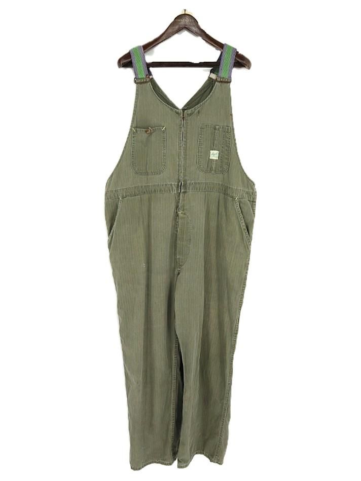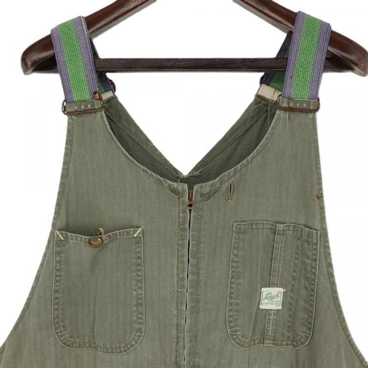 古着 40's~50's USA製 ビンテージ Langall ヘリンボーンツイル セパポケ 変形オーバーオール / W46インチ 相当